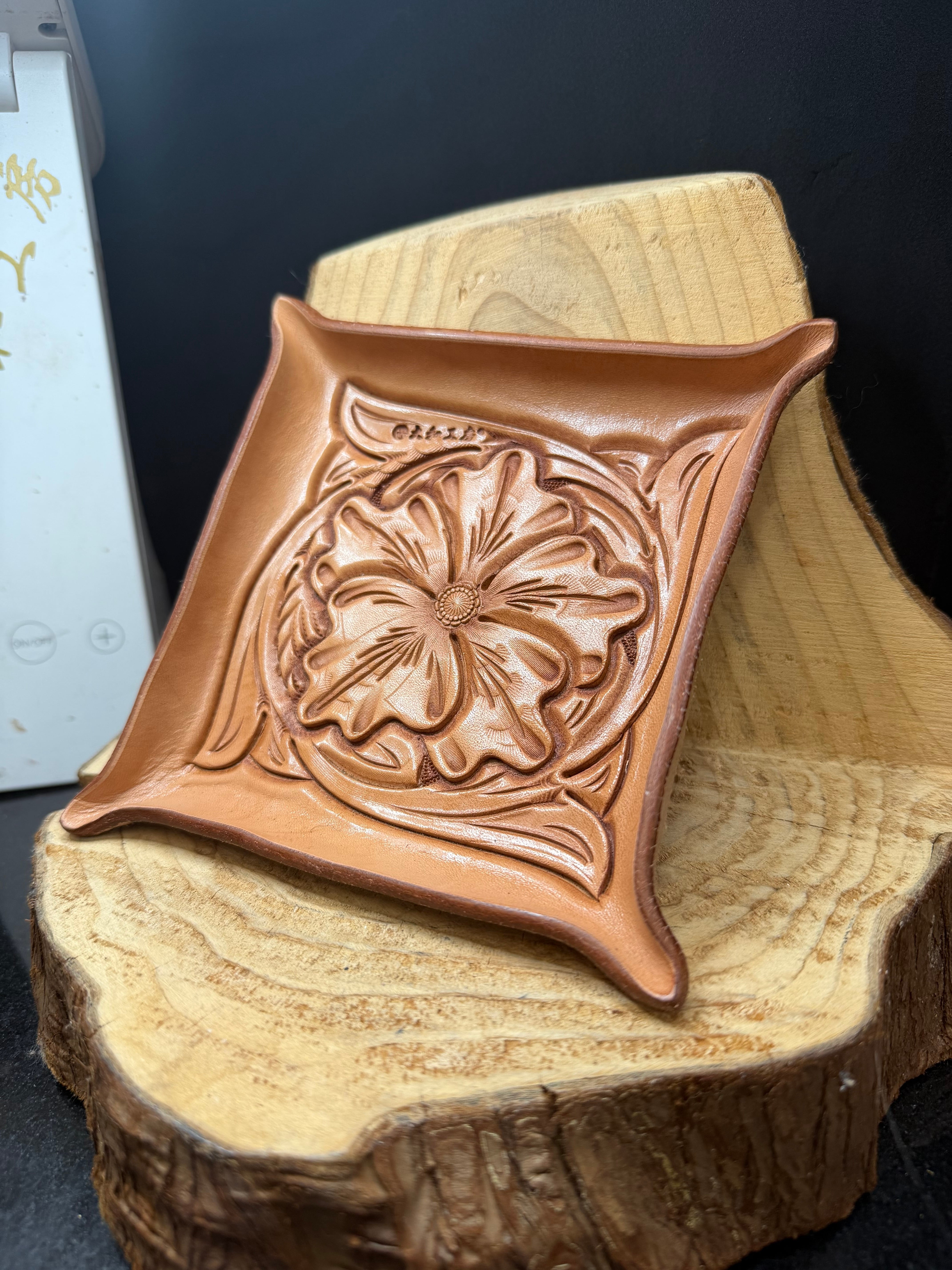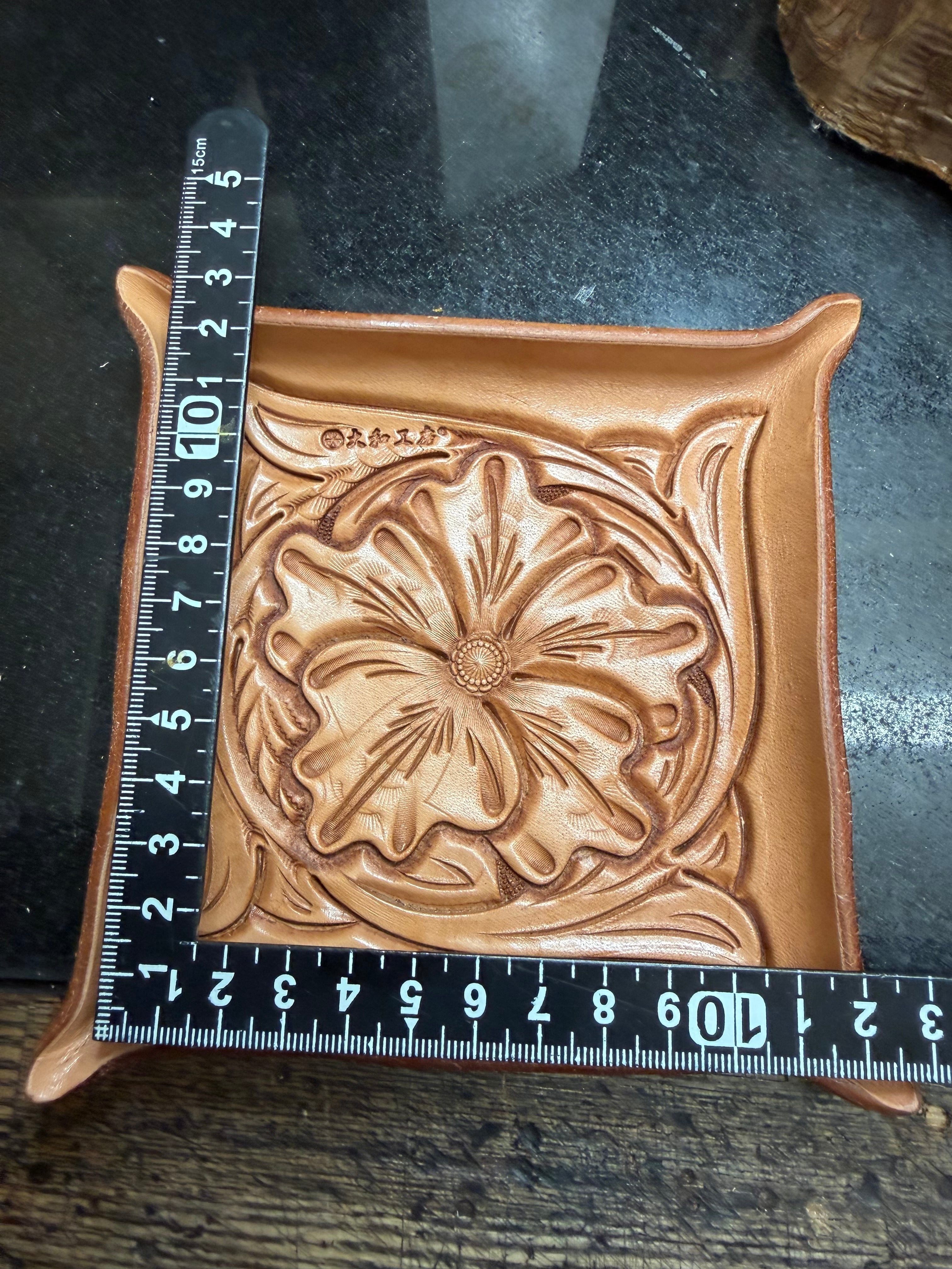 トレイの中には伝統的なフラワーカービングを打ち込んでおります。