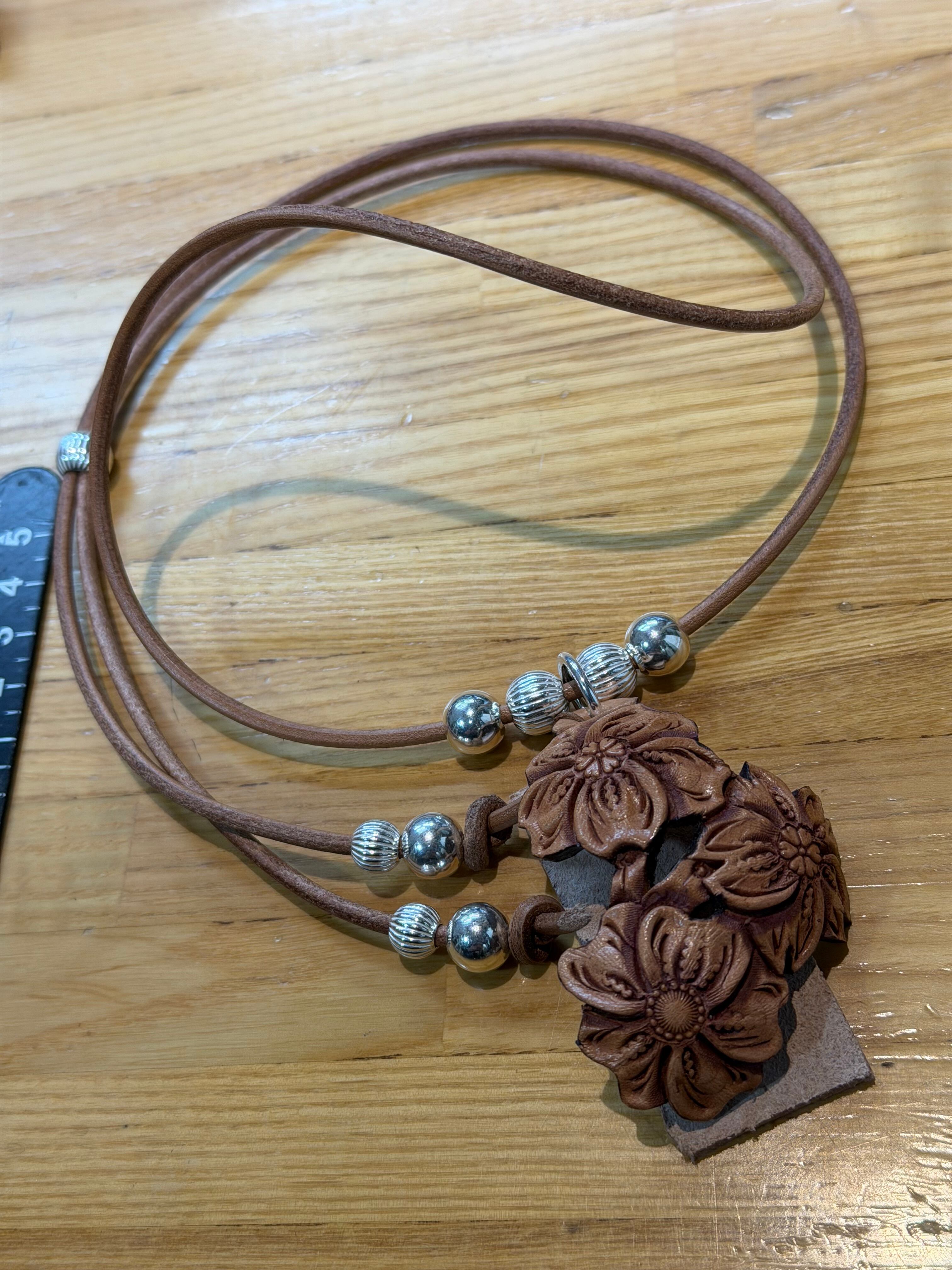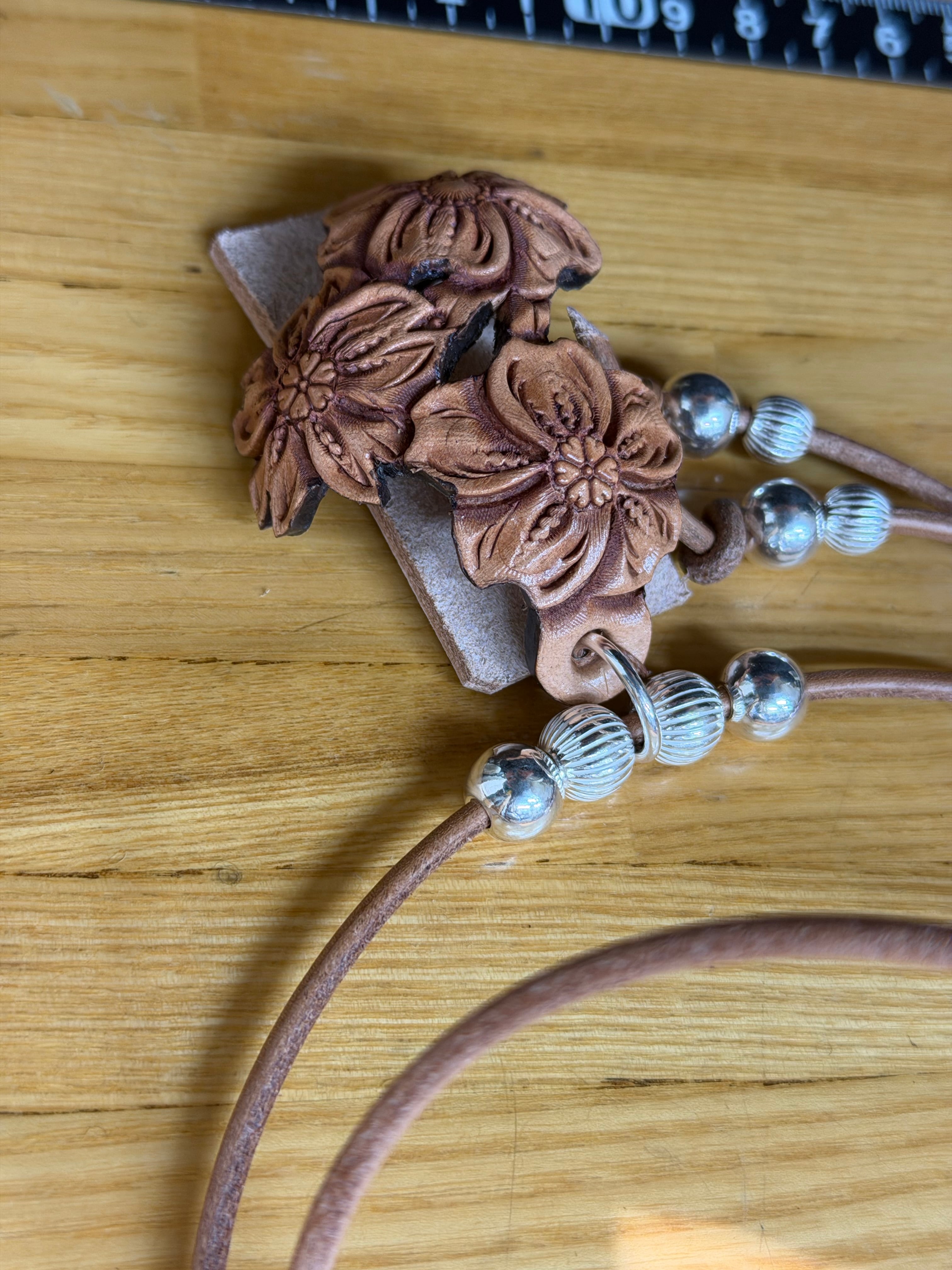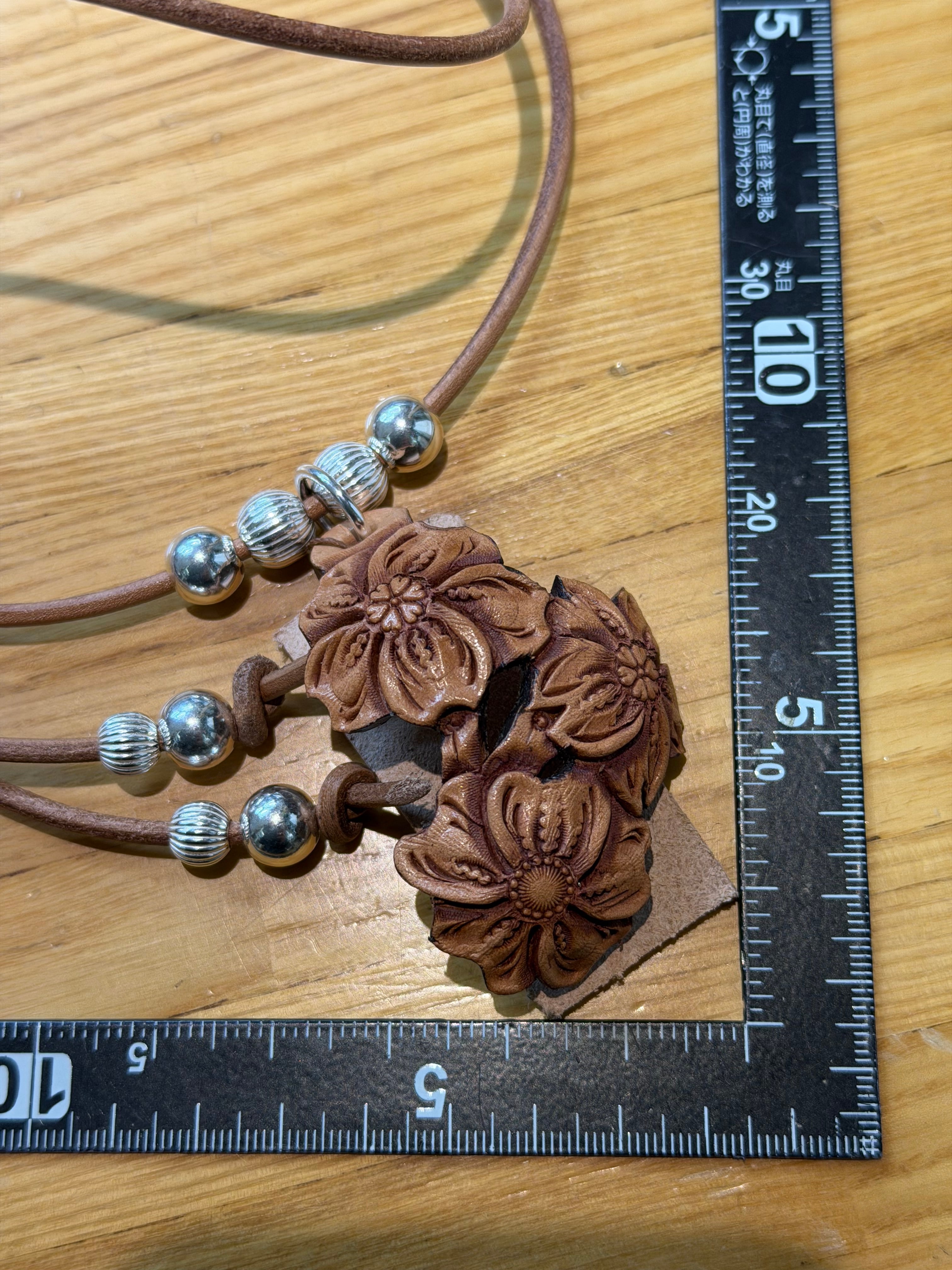オールシルバービーズで牛丸革ひもで仕上げられた極上ネックレスです。