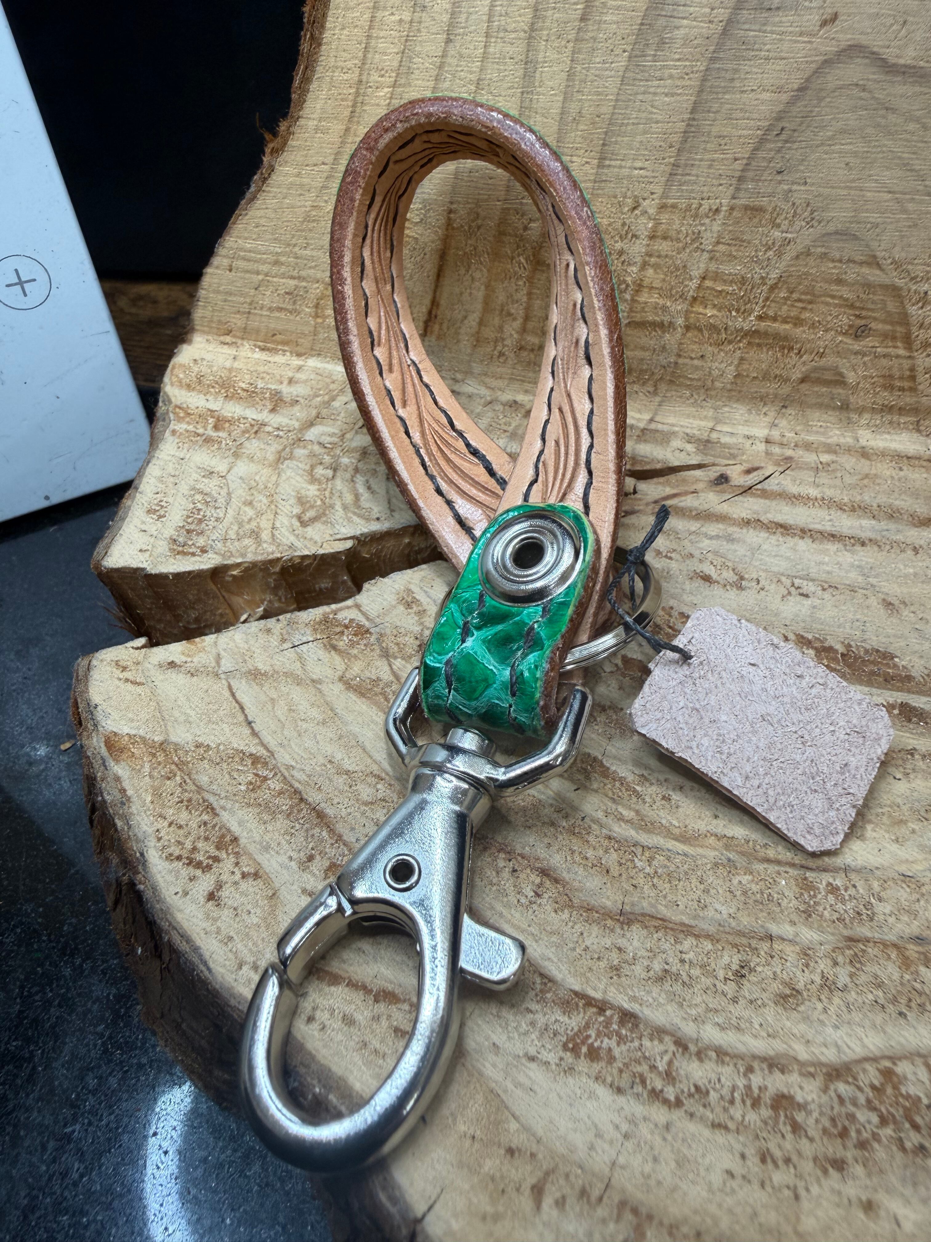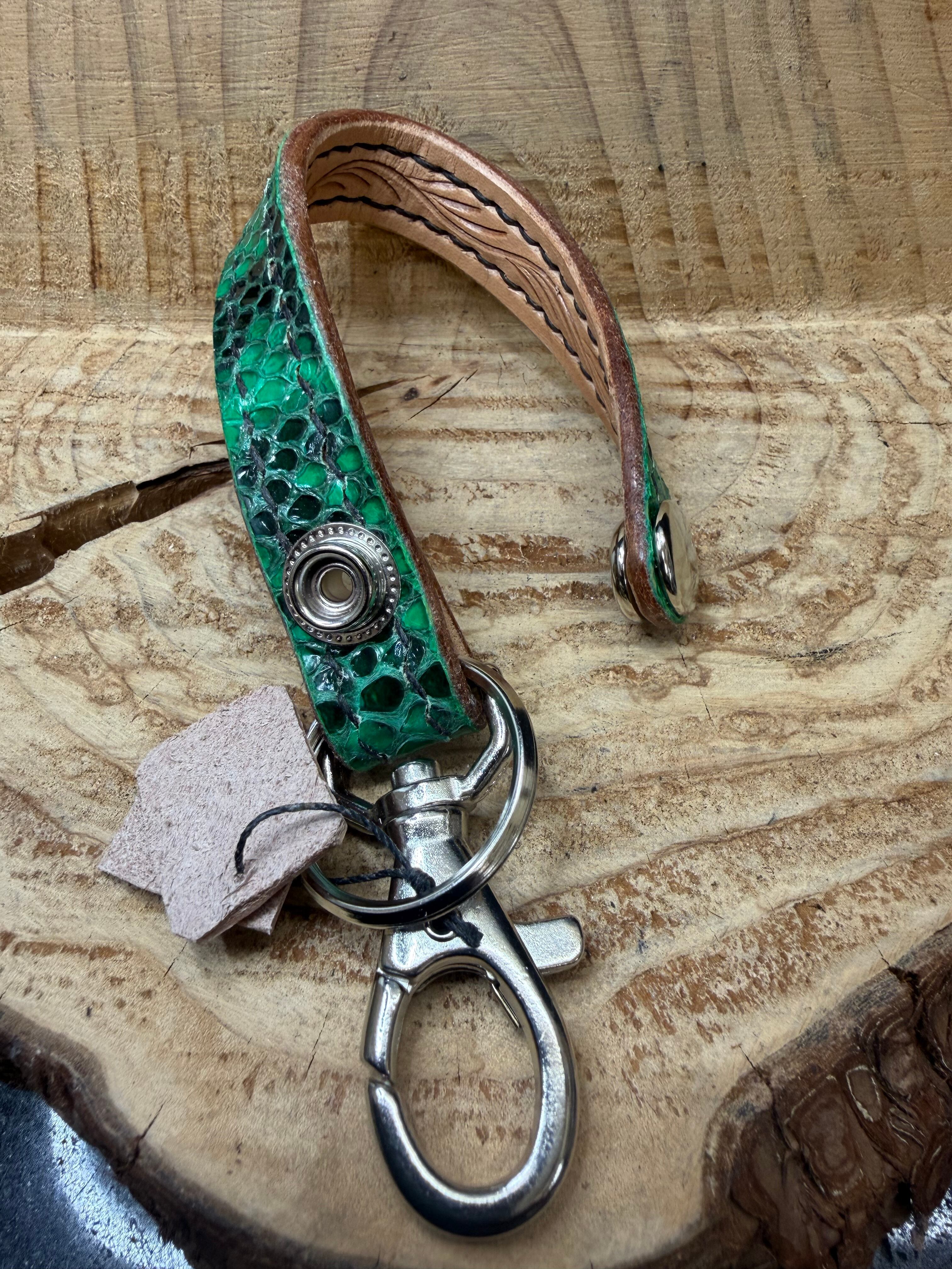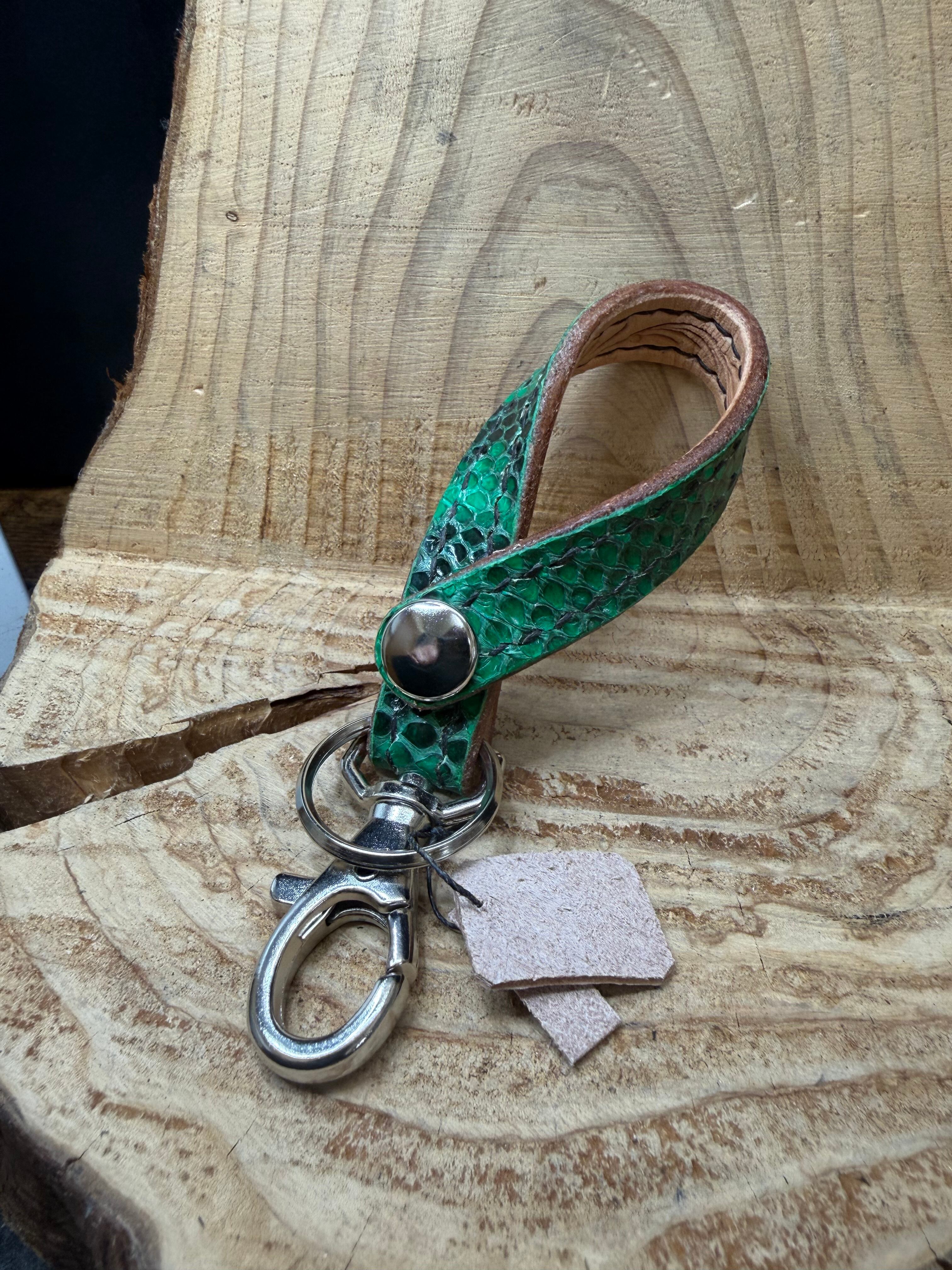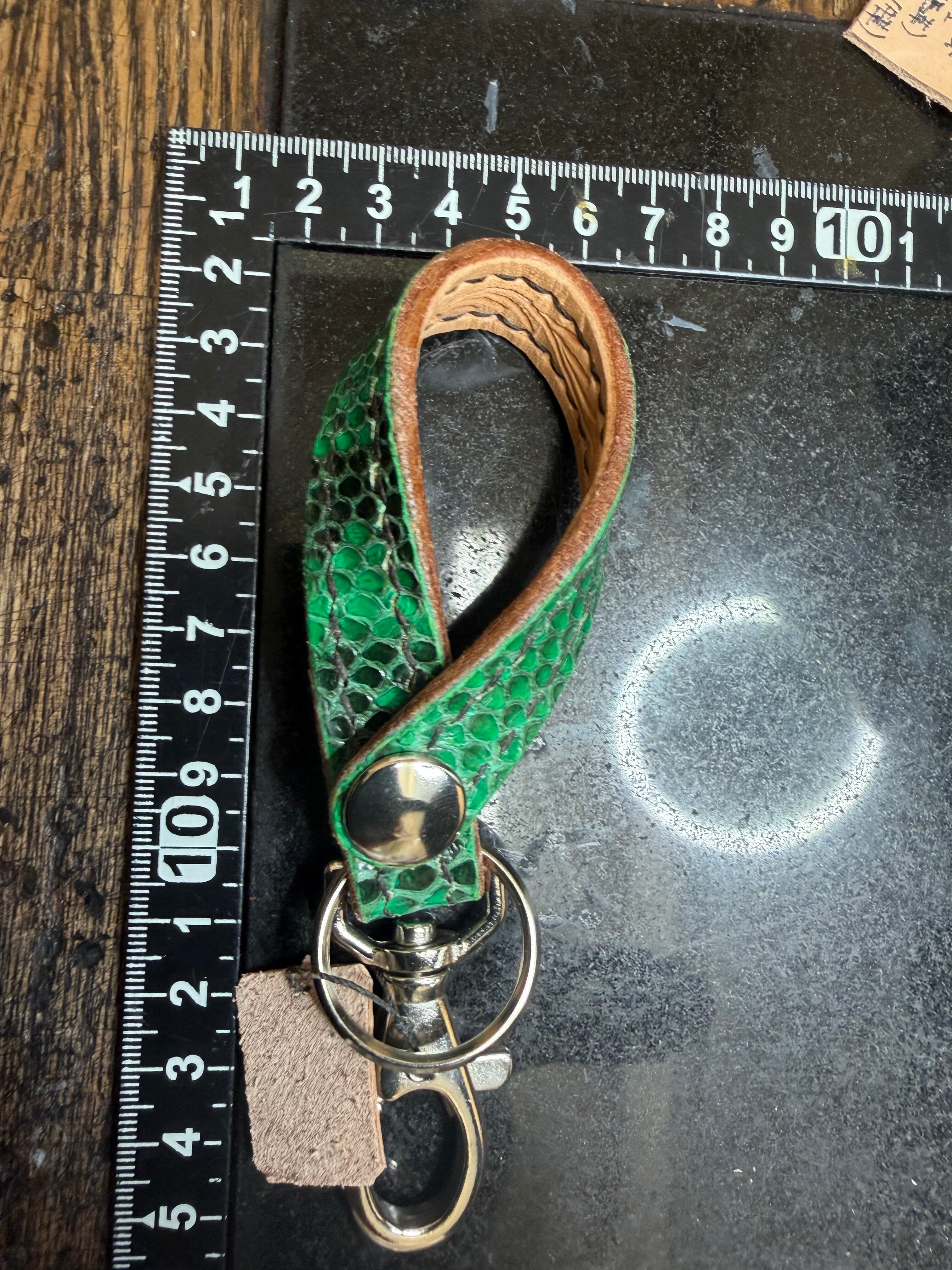 グリーンダイヤモンドパイソン・マフラーキーホルダー(ピンスト唐草)