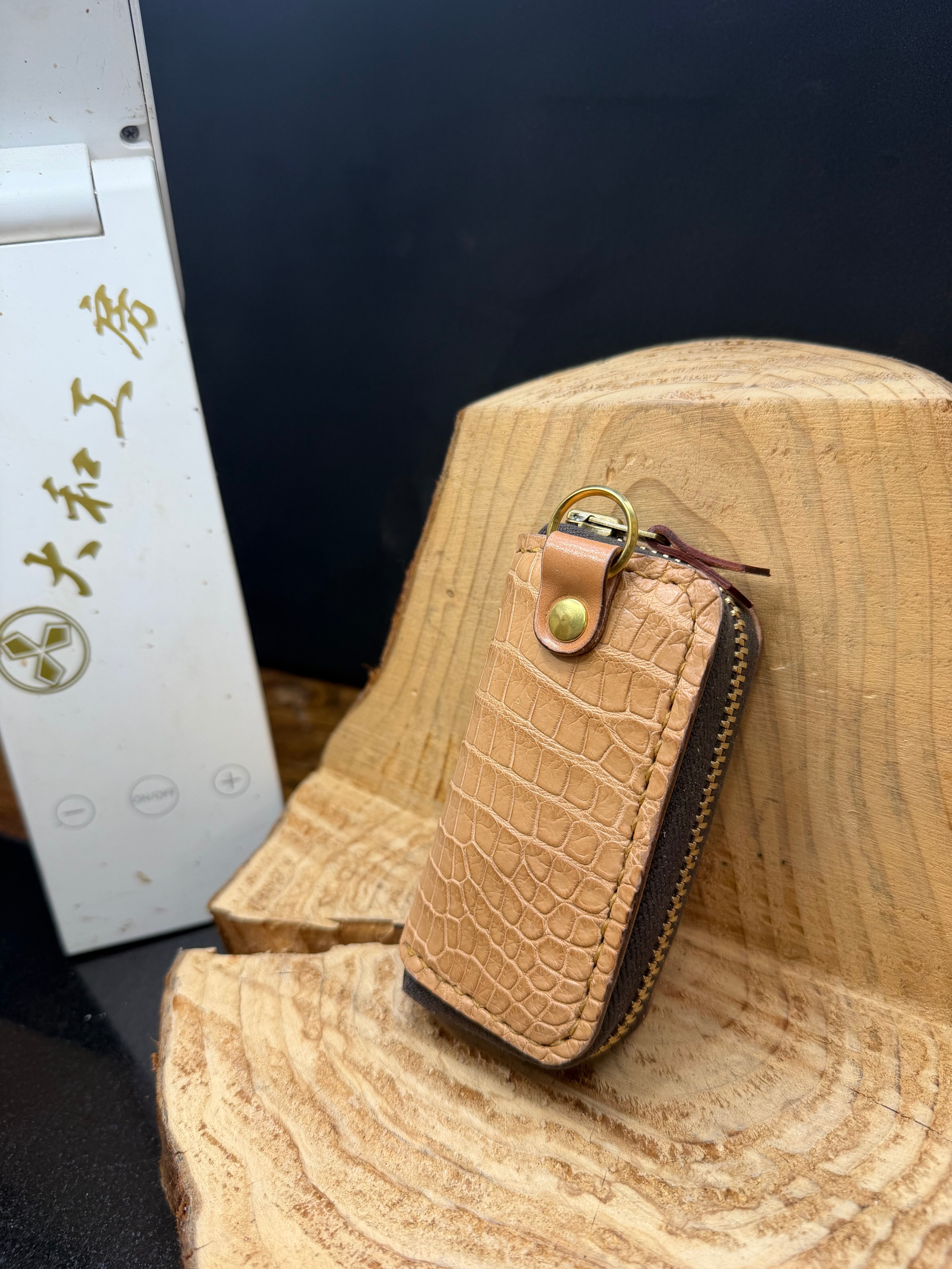 ヌメ革スモールクロコダイル(首部位)を使用したスマートキー・ジッパーケース