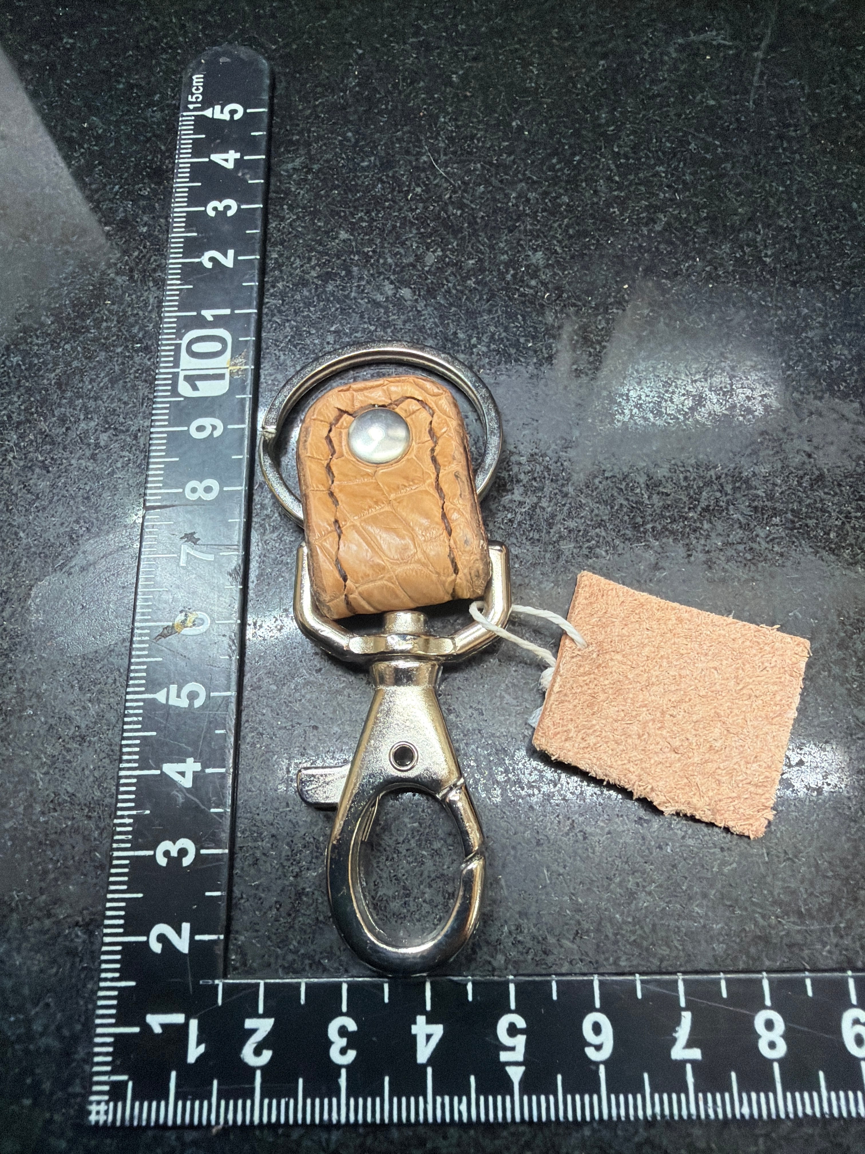 豪華なヌメ革スモールクロコダイルのライトキーホルダー