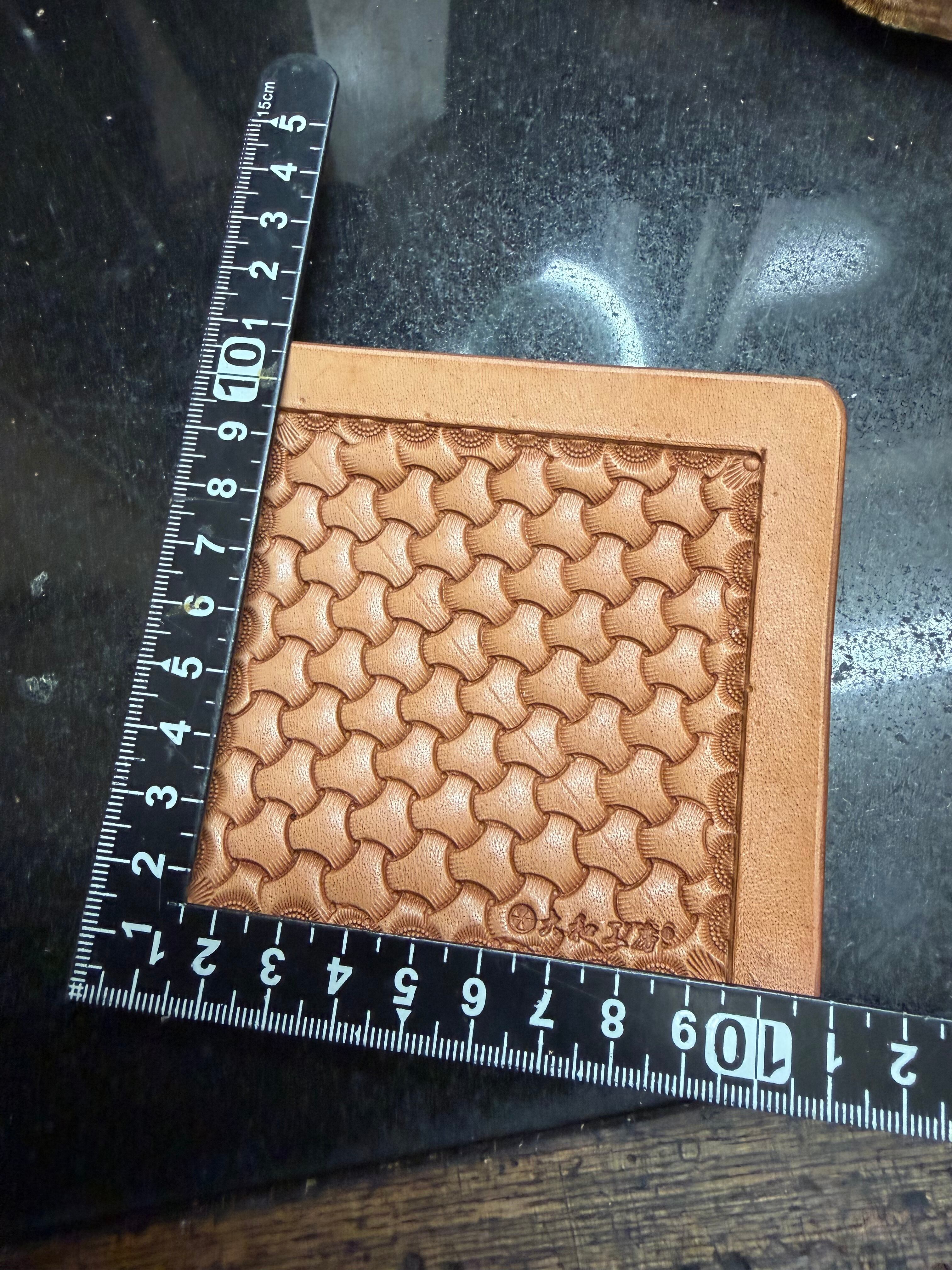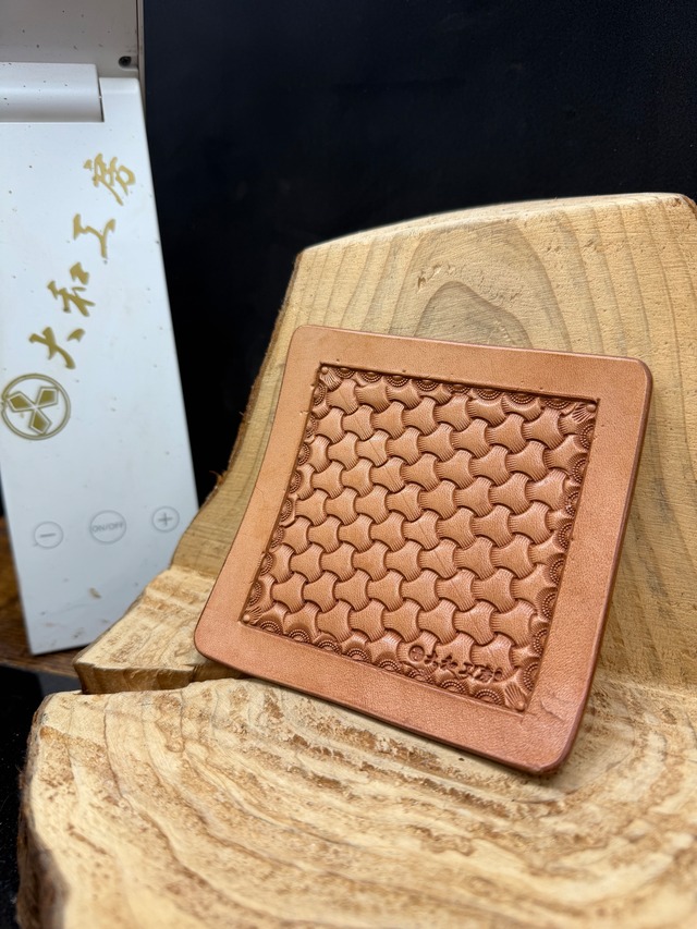 レザーカービングコースター大サイズのトライアングルバスケットの彫り込みです。