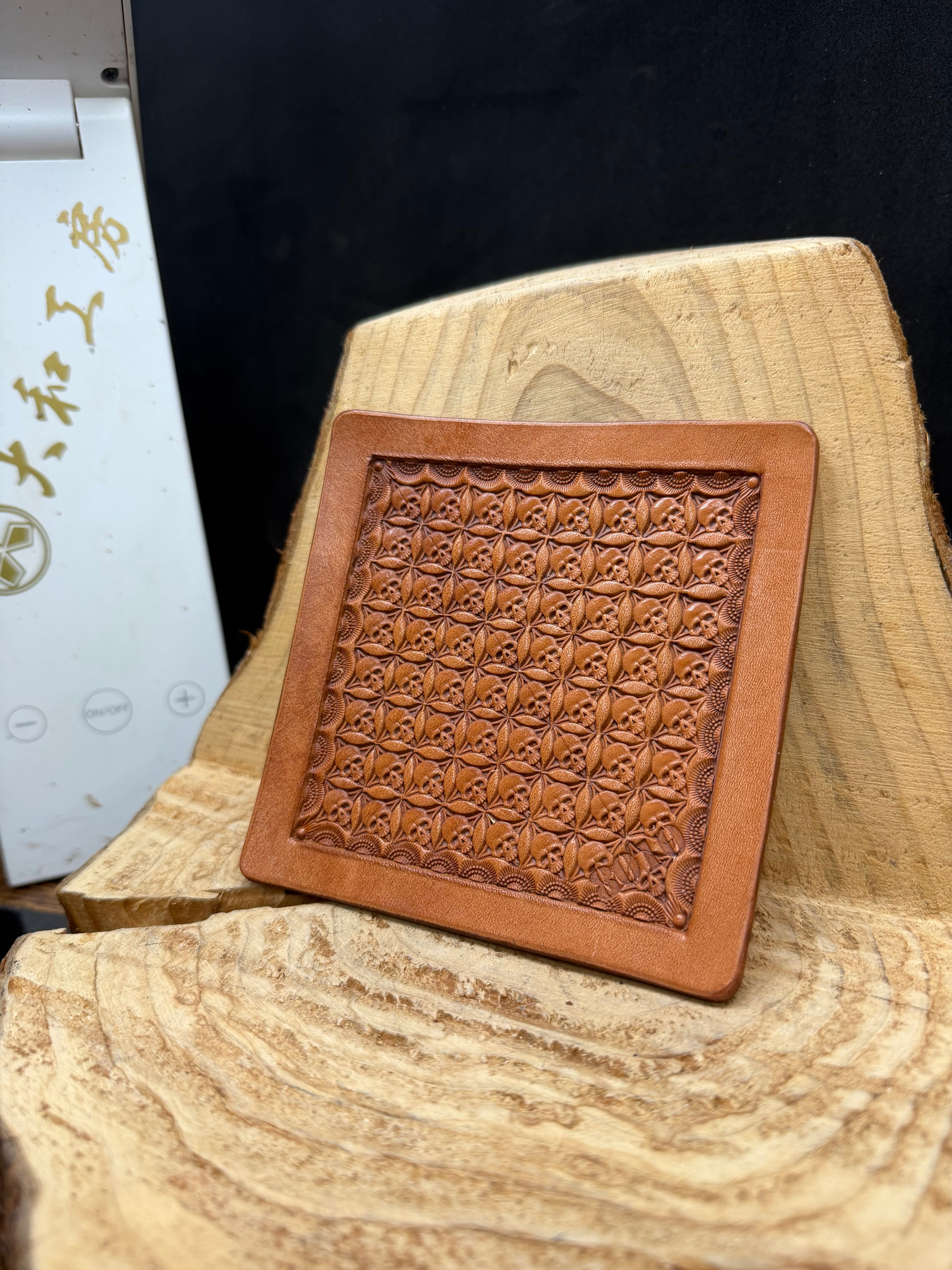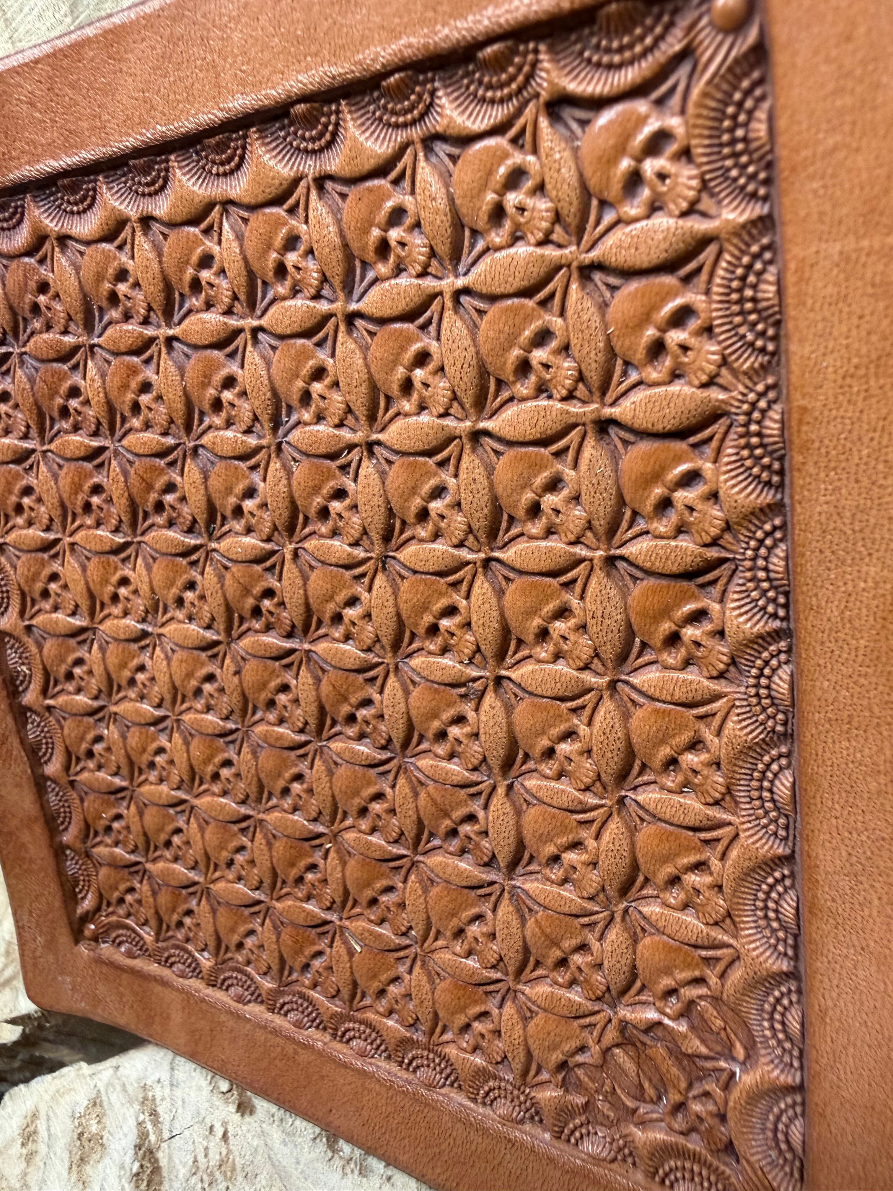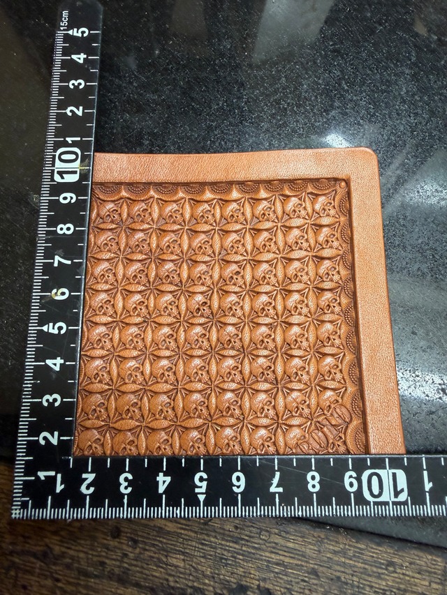 レザーカービングコースター大サイズのスカルバスケットの彫り込みです。
