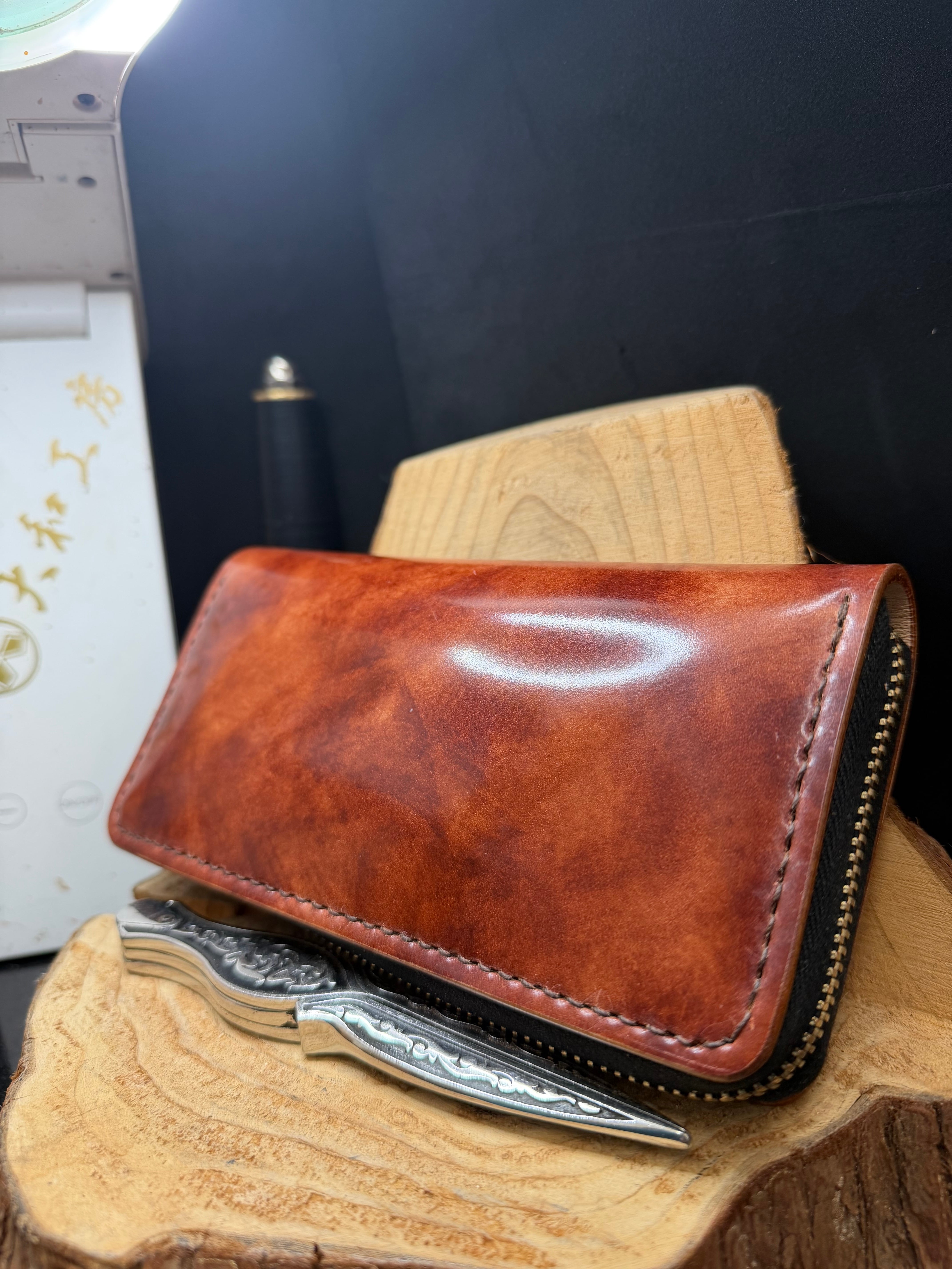 磨かれた木目にも見える大変貴重な美しいコードバンを使用しております。