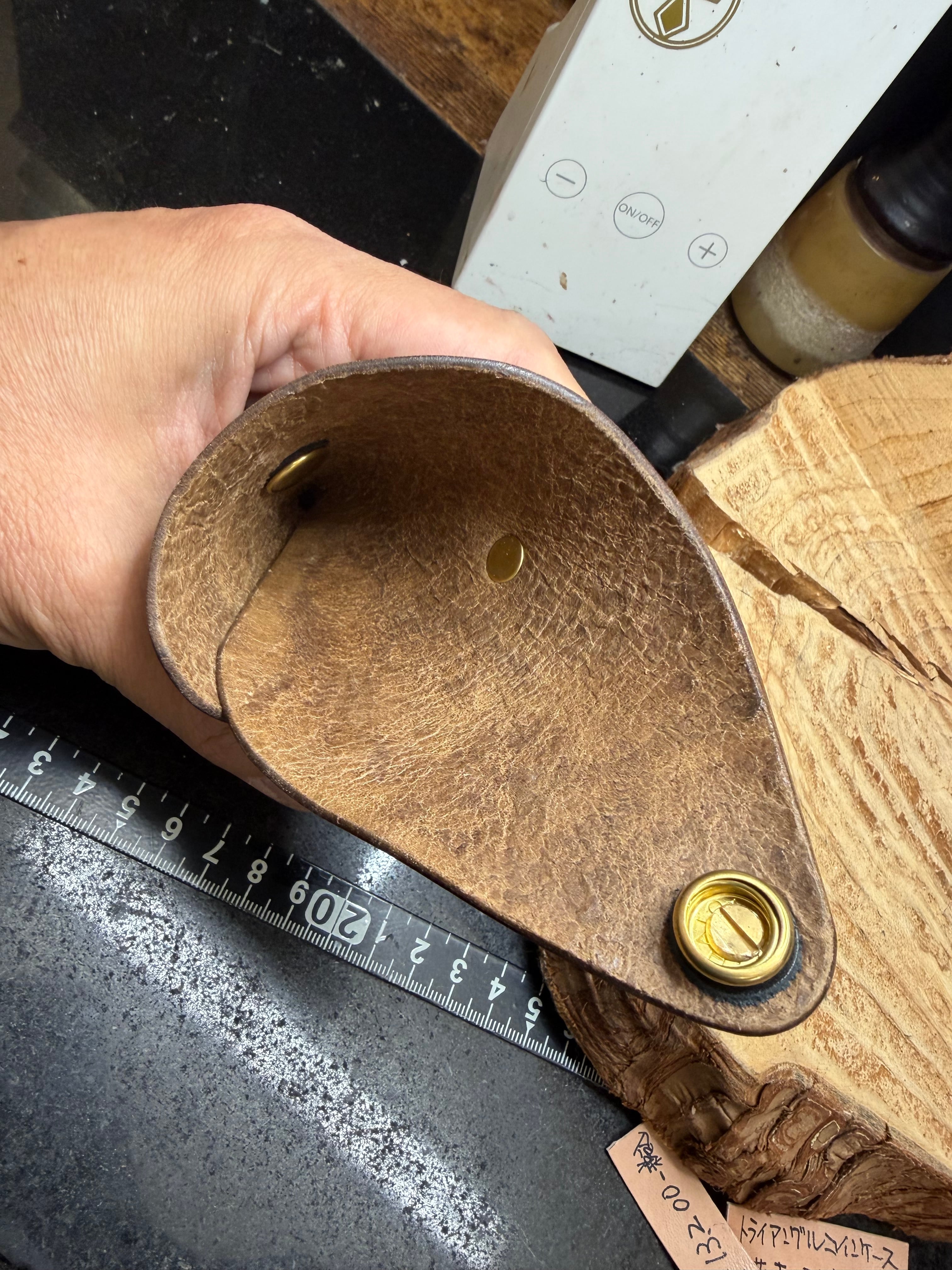 比較的厚い革になりますが、馬革特有のしなやかさとバケッタ製法によりオイルがしっかり効いているため、硬さはそれほどありません。