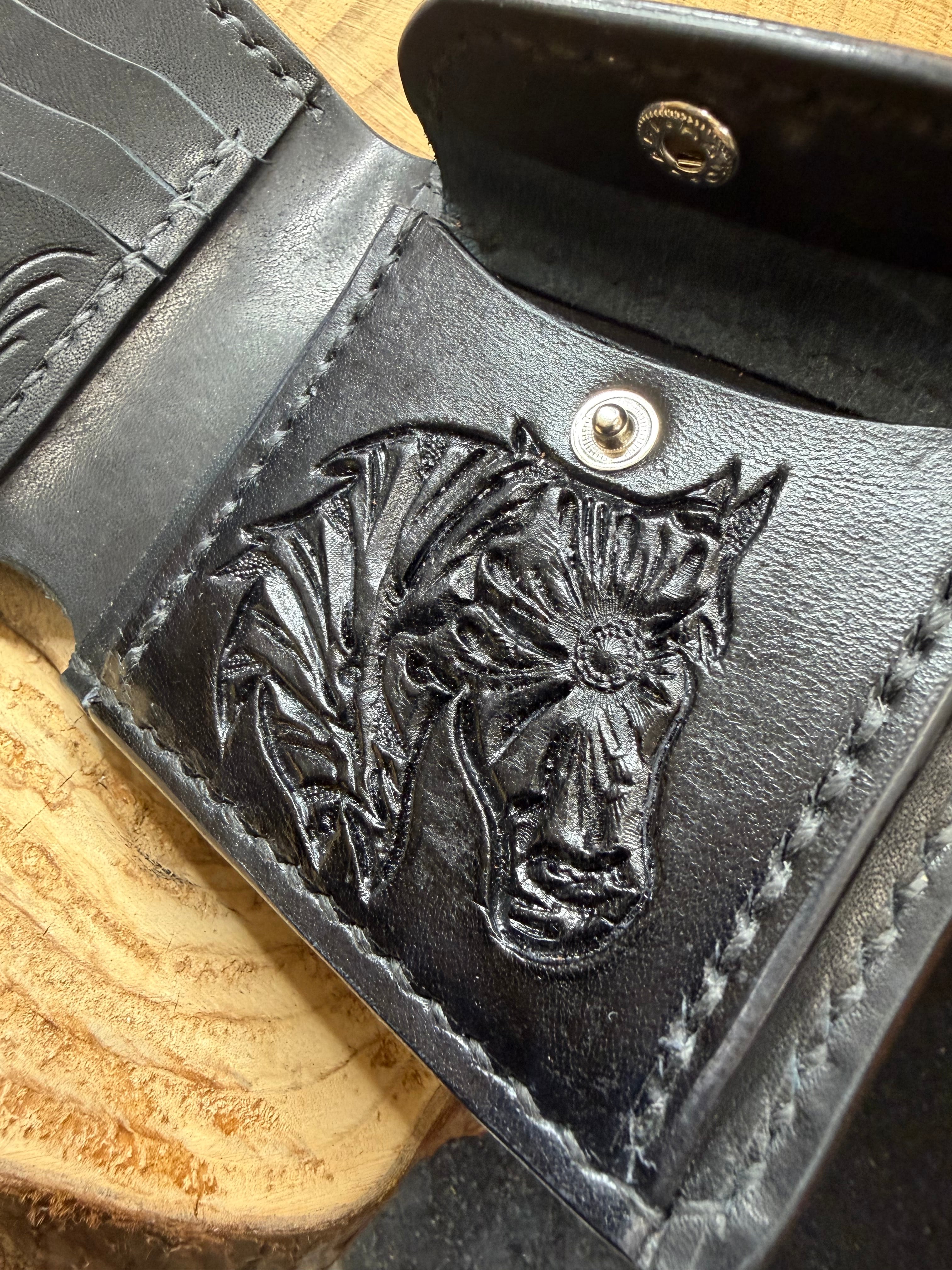 中にはなんと馬の頭のトリックカービング(シェリダンスタイル)を彫り込みブラックアウトしております。