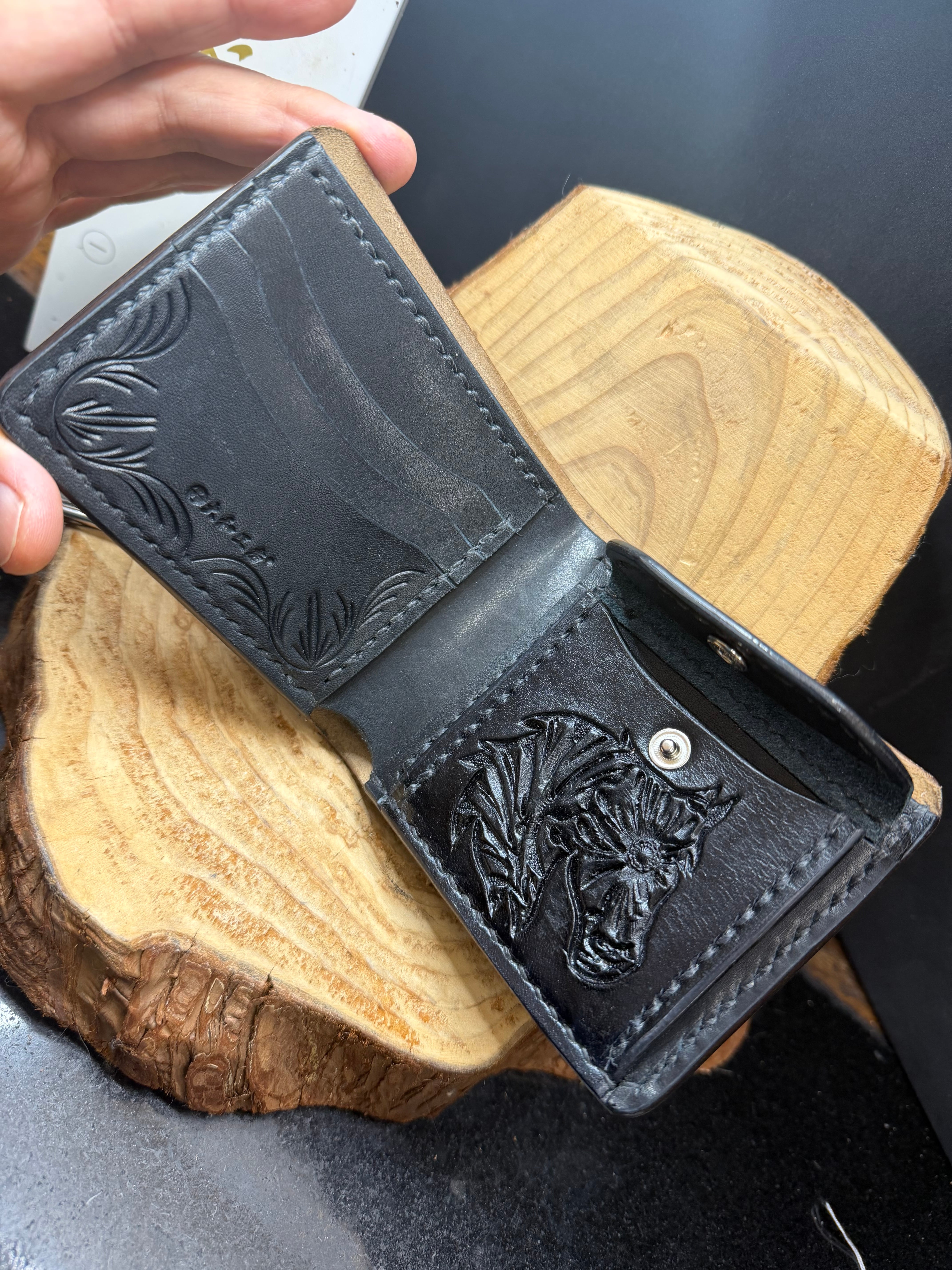 茶芯レザーとしてエンジニアブーツやバイカーが好むブーツのアッパーに使われている革になります。植物タンニン革でオイルがしっかり効いております。他にもトラッカーウォレットやバイカーが好むアイテムに使われることが多い革です。
