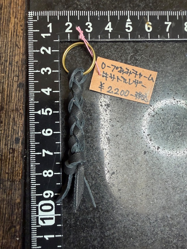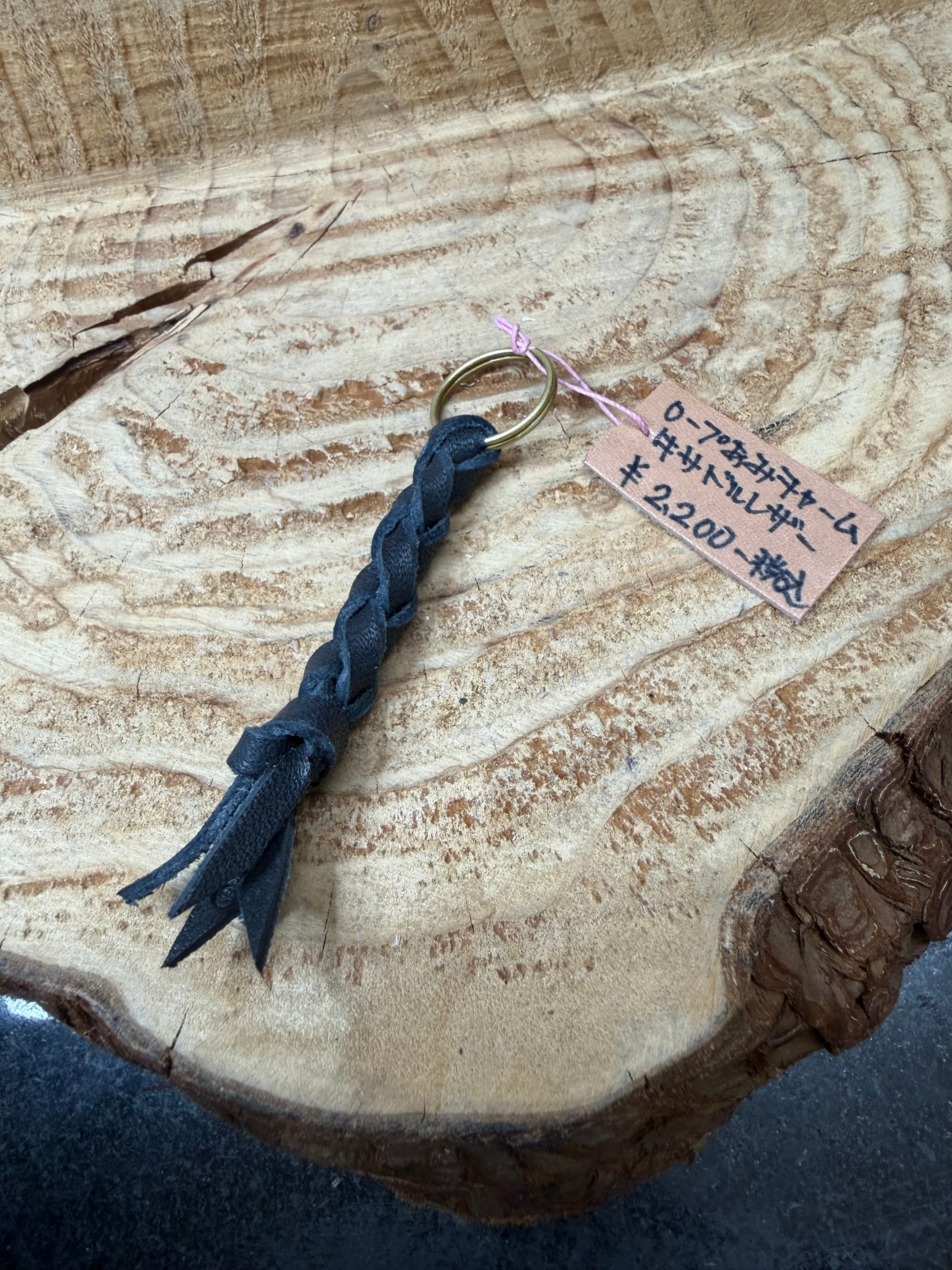 4本丸編み・ブラック芯染め牛革チャームストラップです。