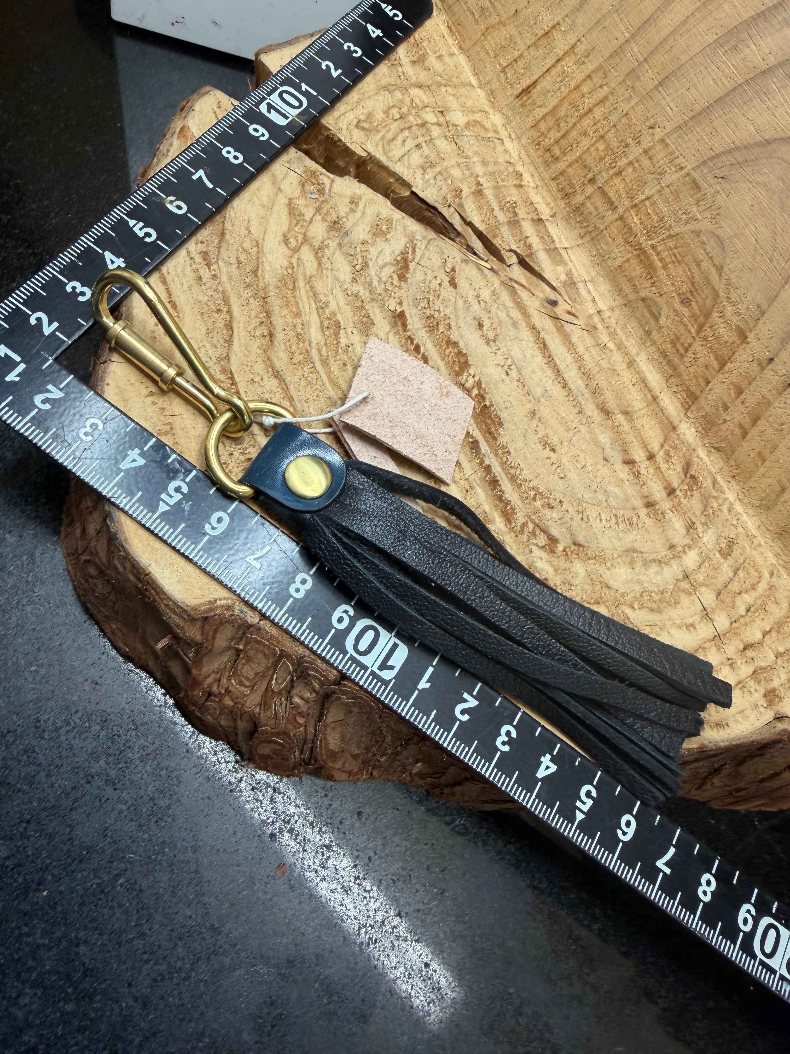 ブラックディアスキン・フリンジキーホルダー(鹿革・ネイビーオイルコードバン)