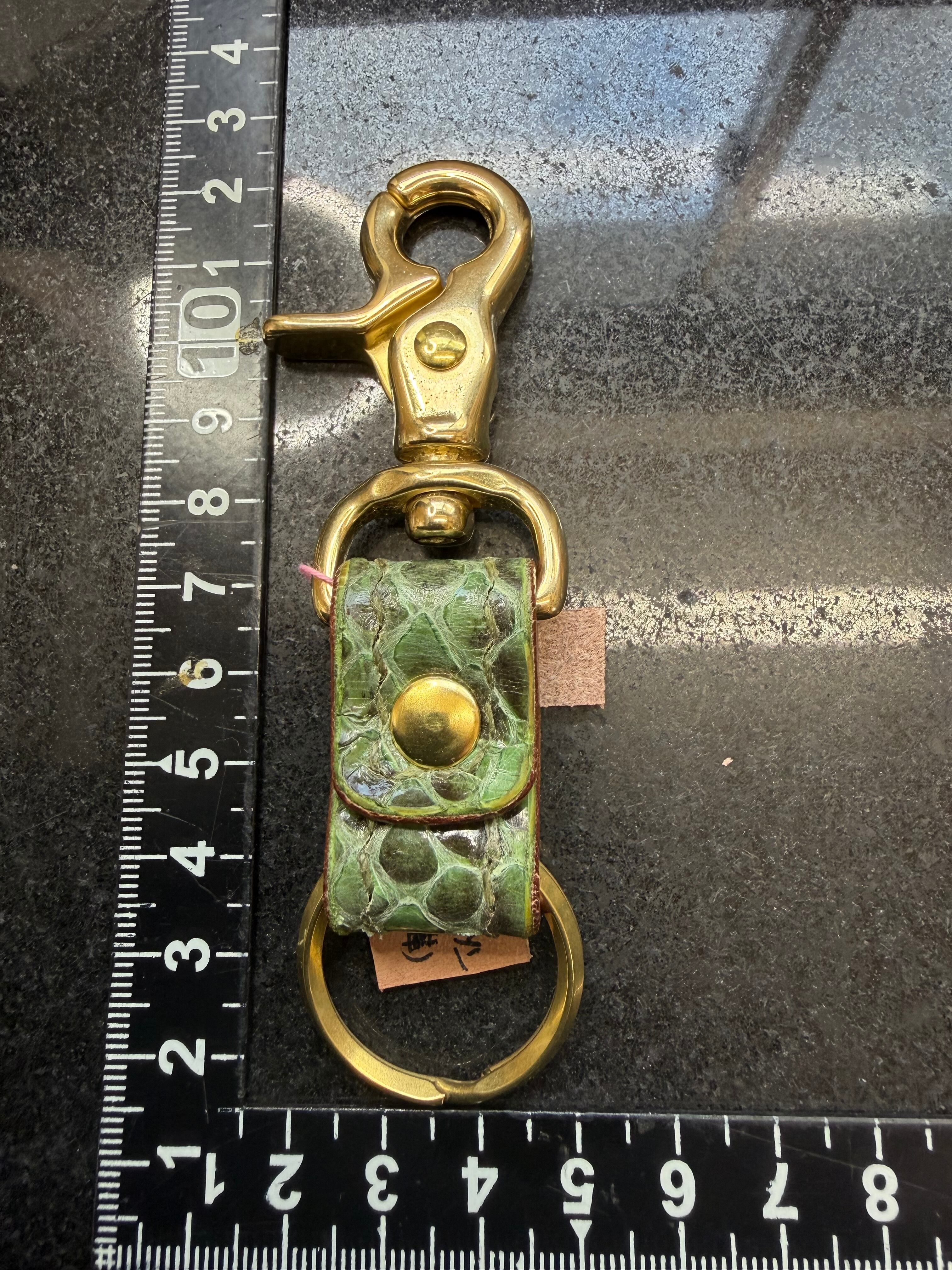 色鮮やかなグリーンカラーのダイヤモンドパイソンのキータグです。