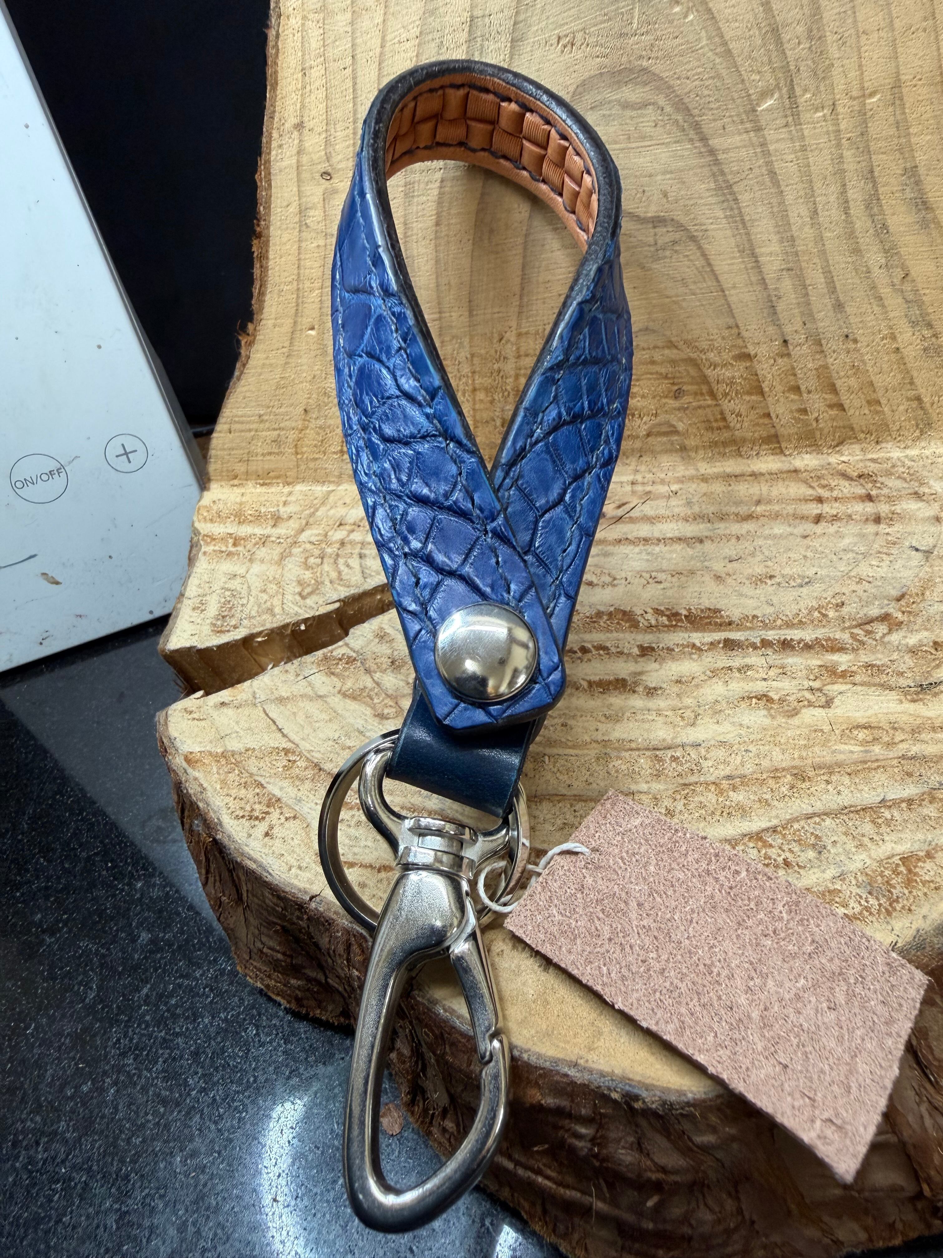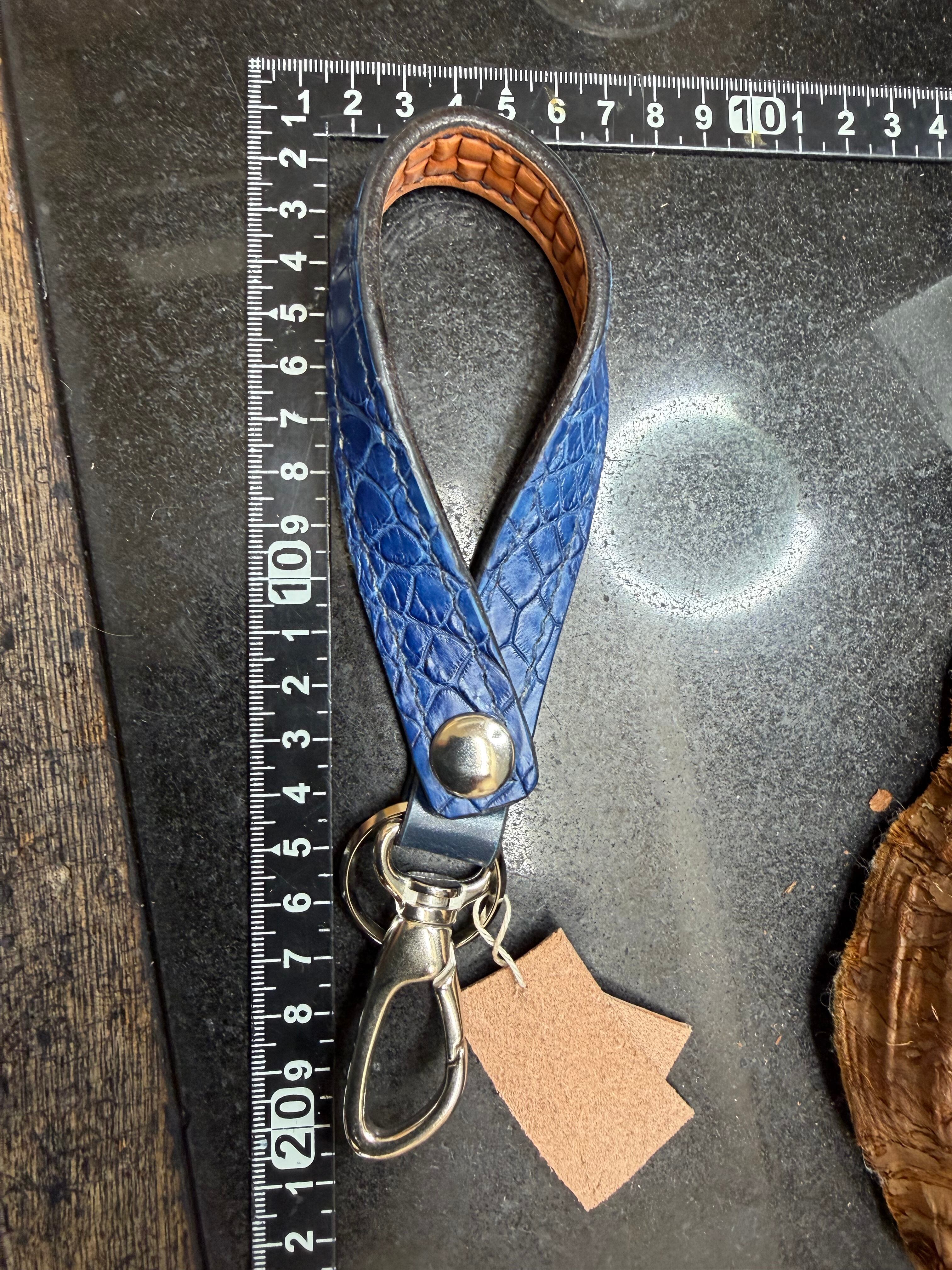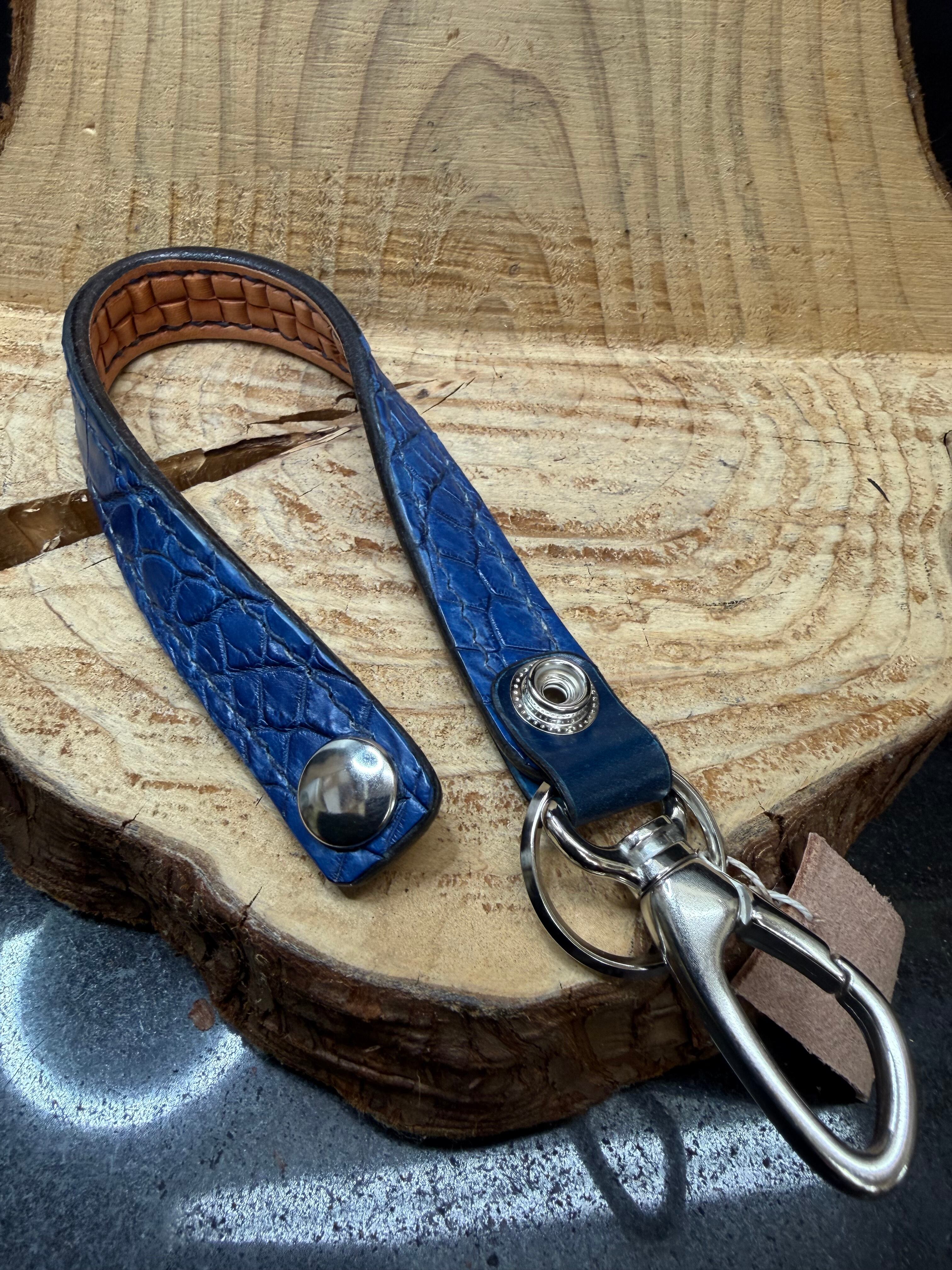 贅沢に藍染ポロサス(スモールクロコダイル)を使用した作品です。裏面には極小ブロックバスケットを彫り込んでおります。