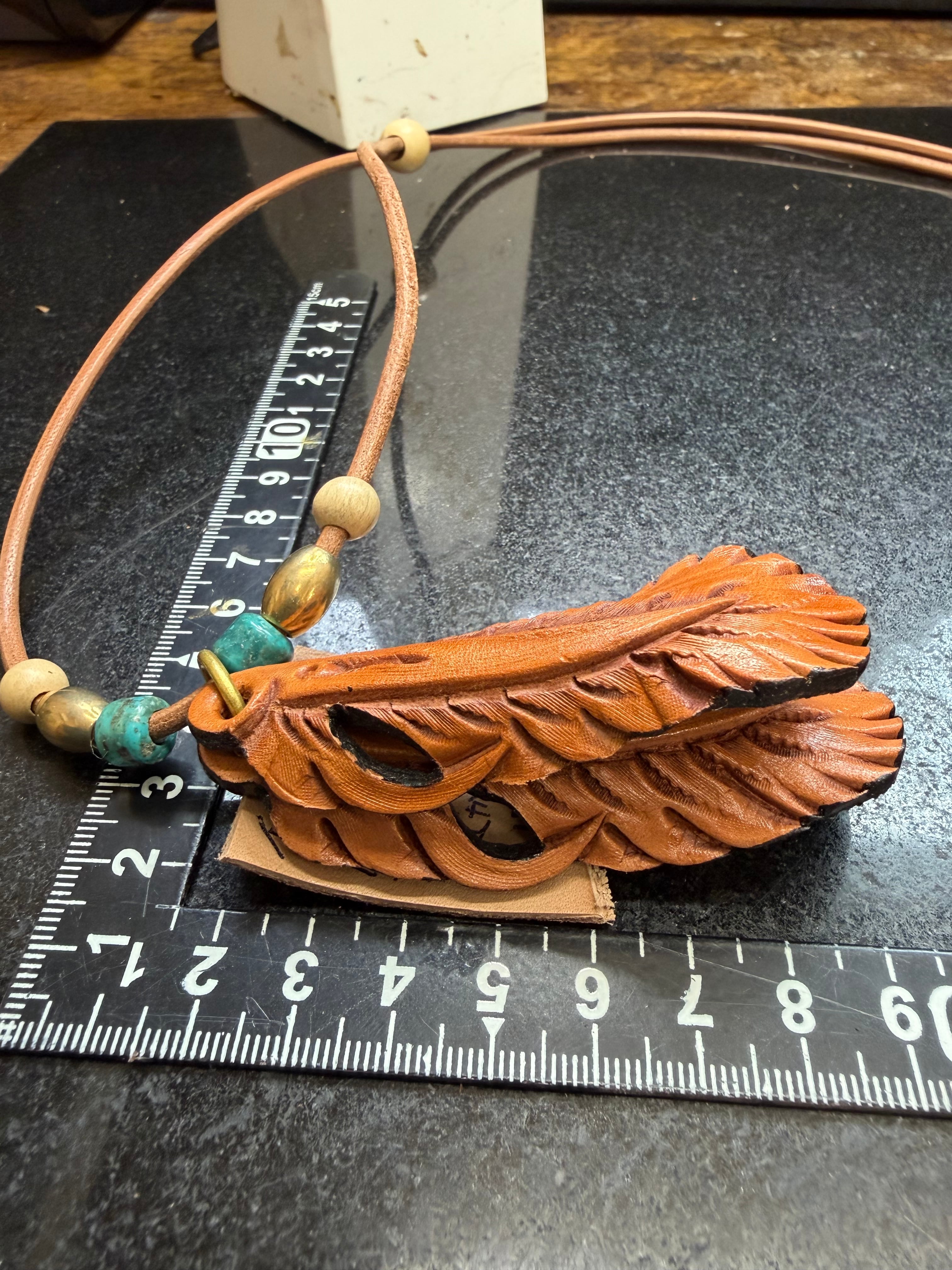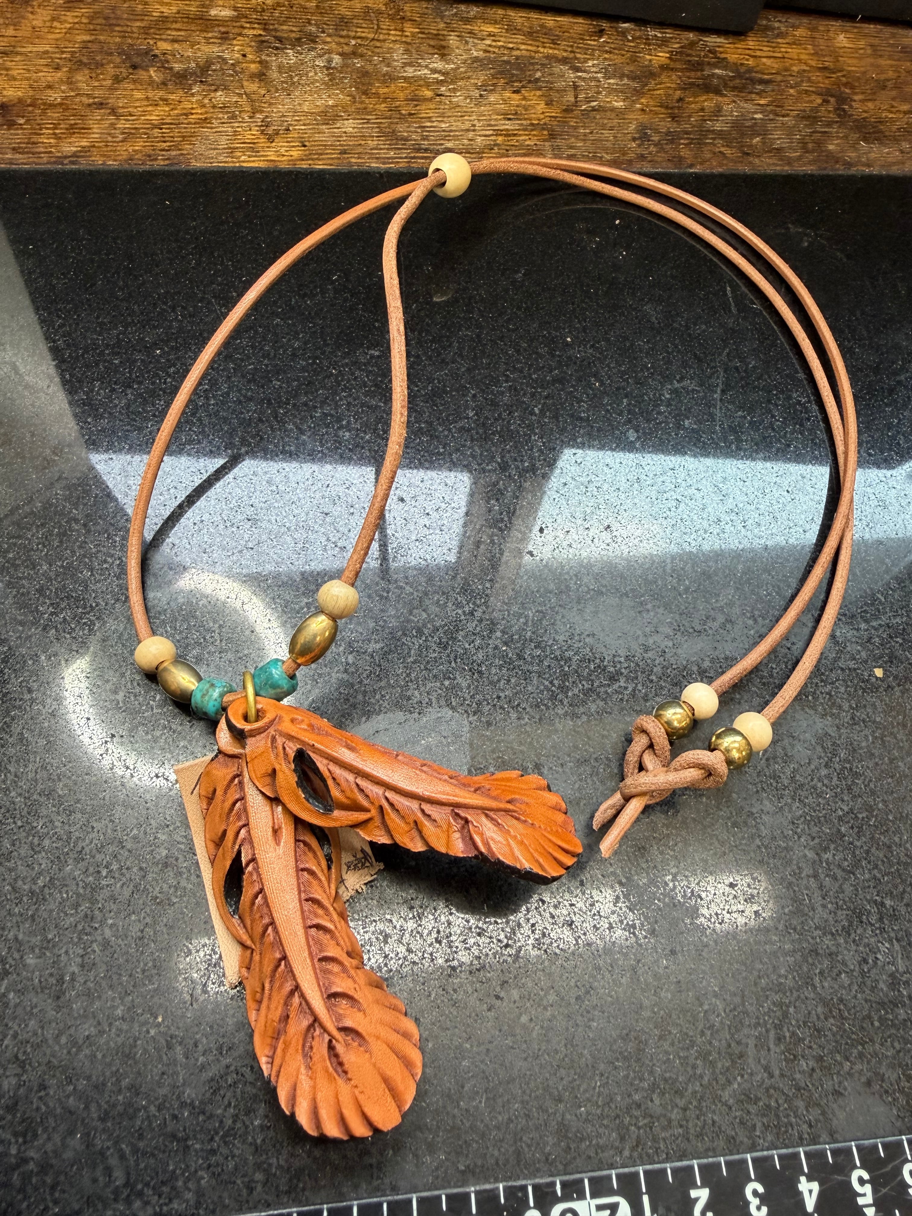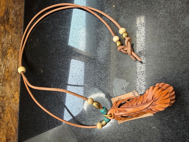レザーイーグルフェザー2枚を重ね合わせたネックレスです。