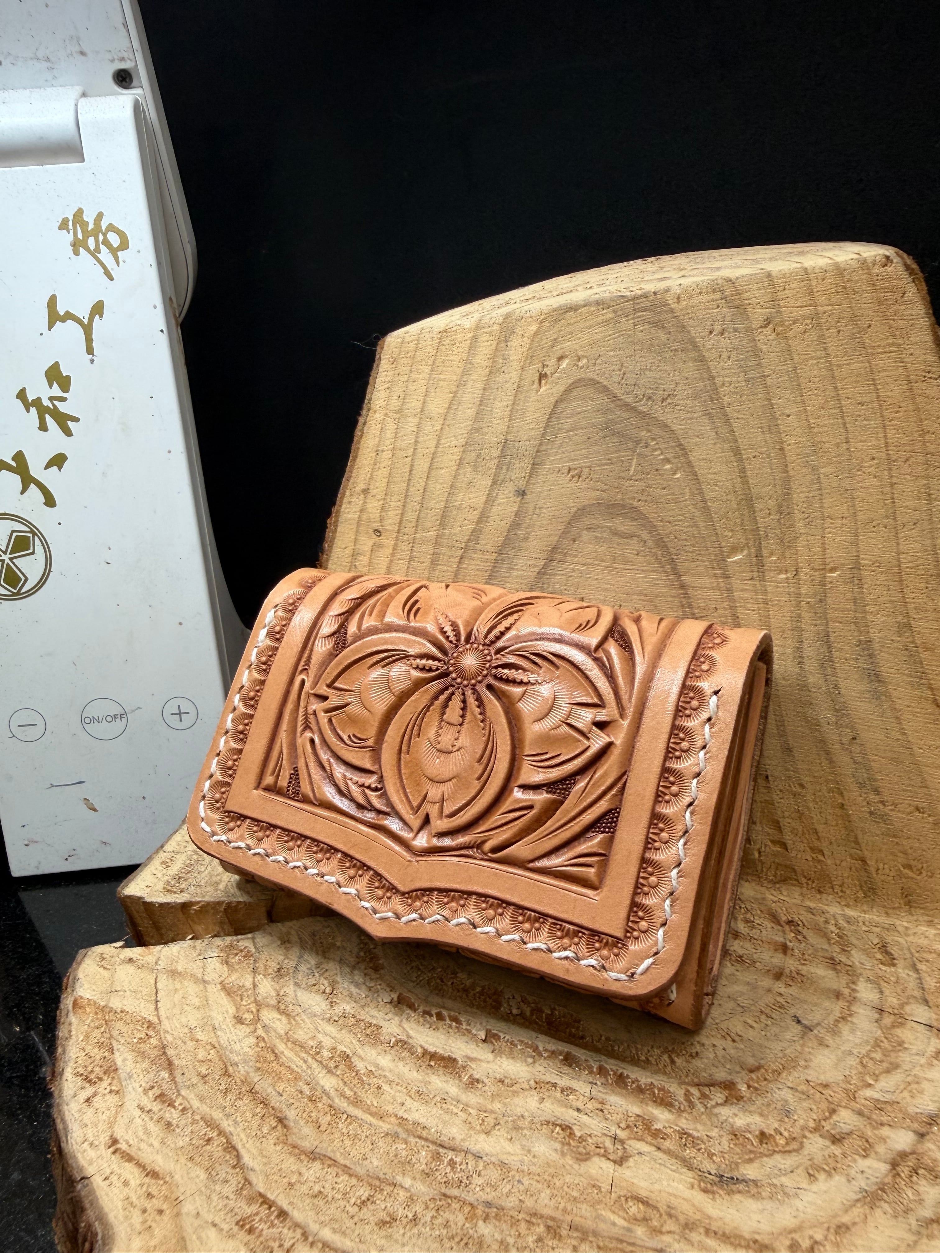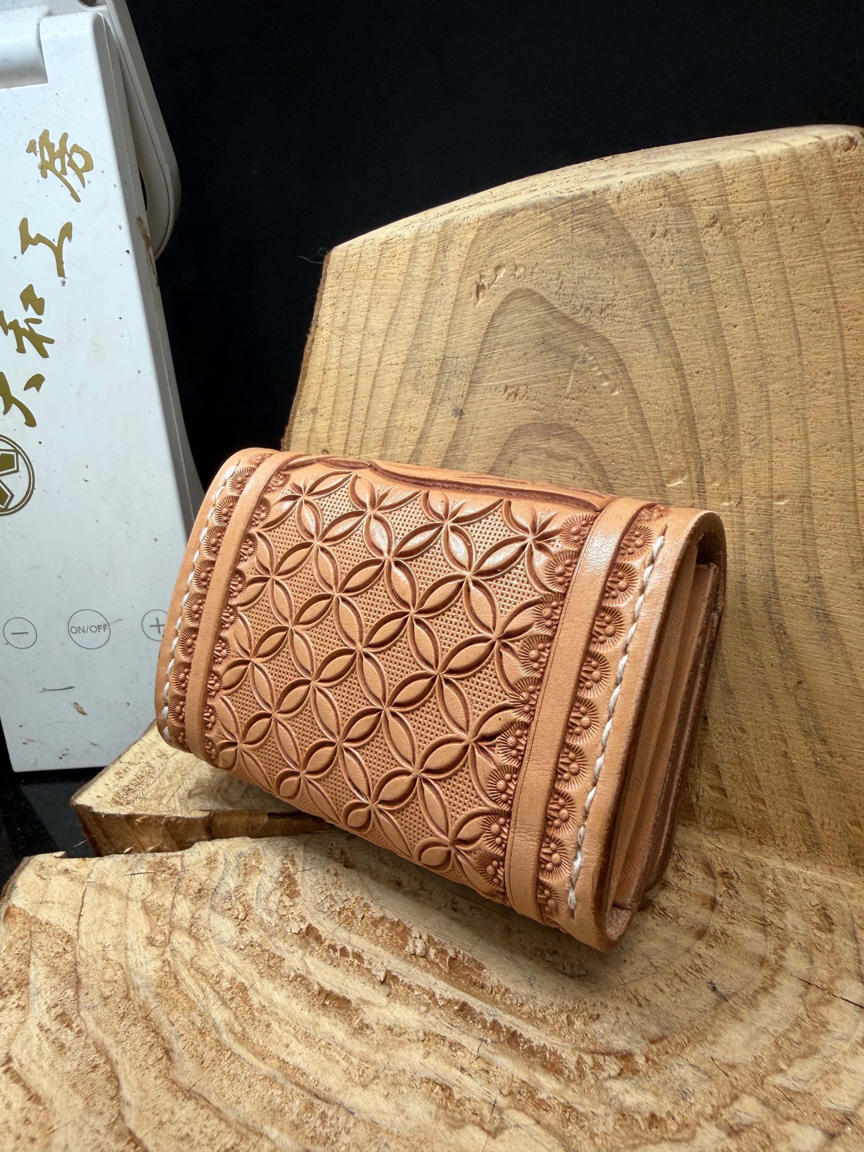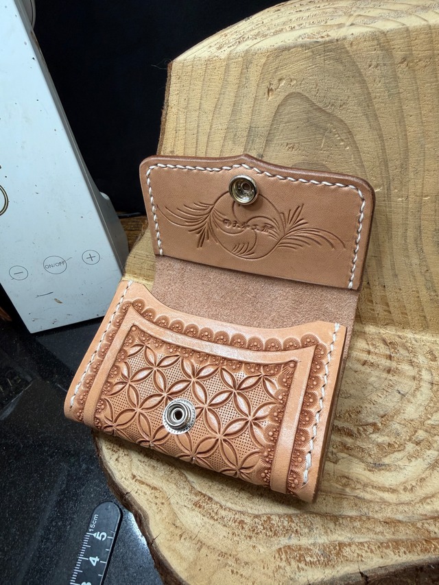 名刺or小銭入れ(桜カービング&ワッフルバスケット)