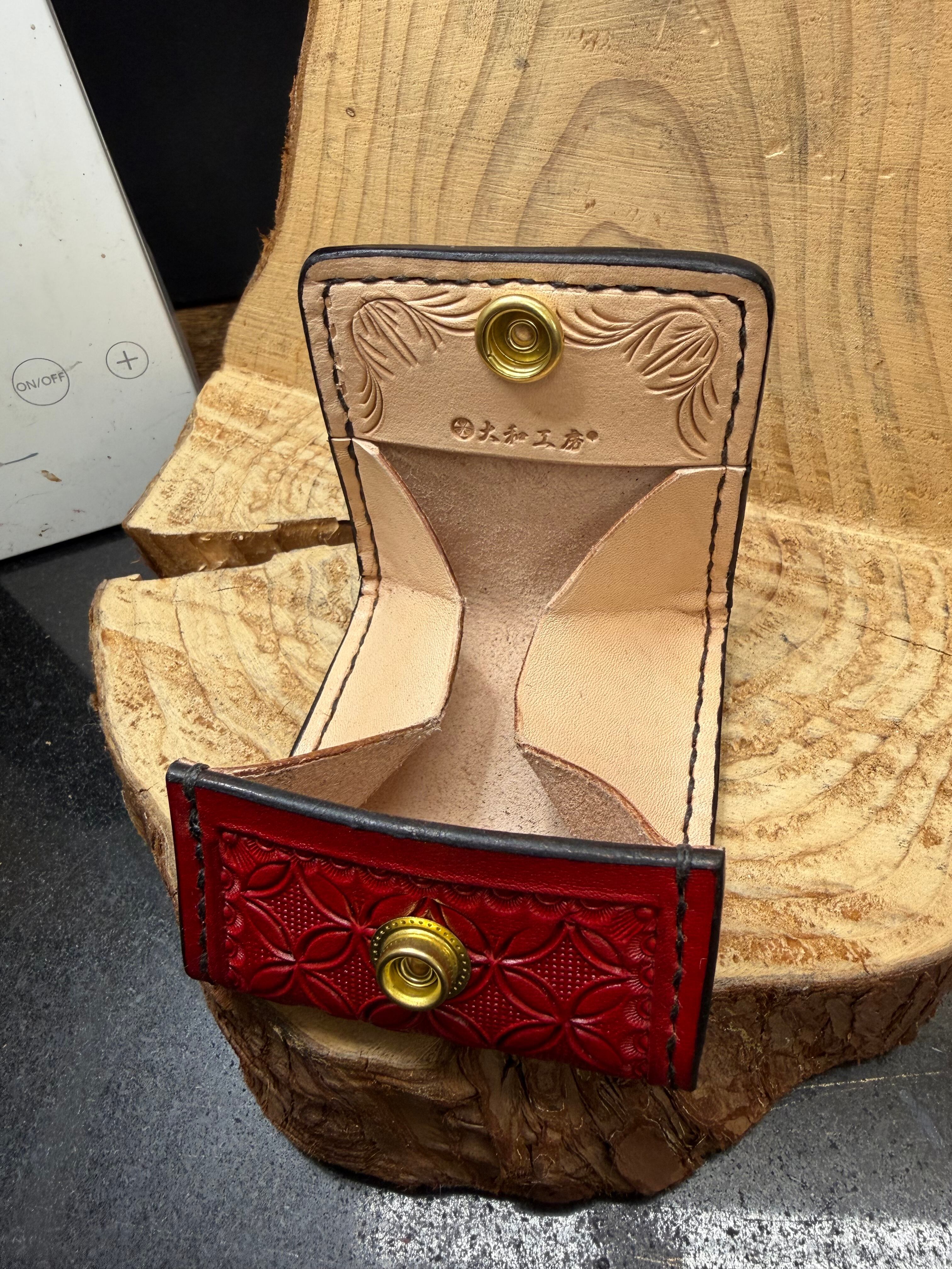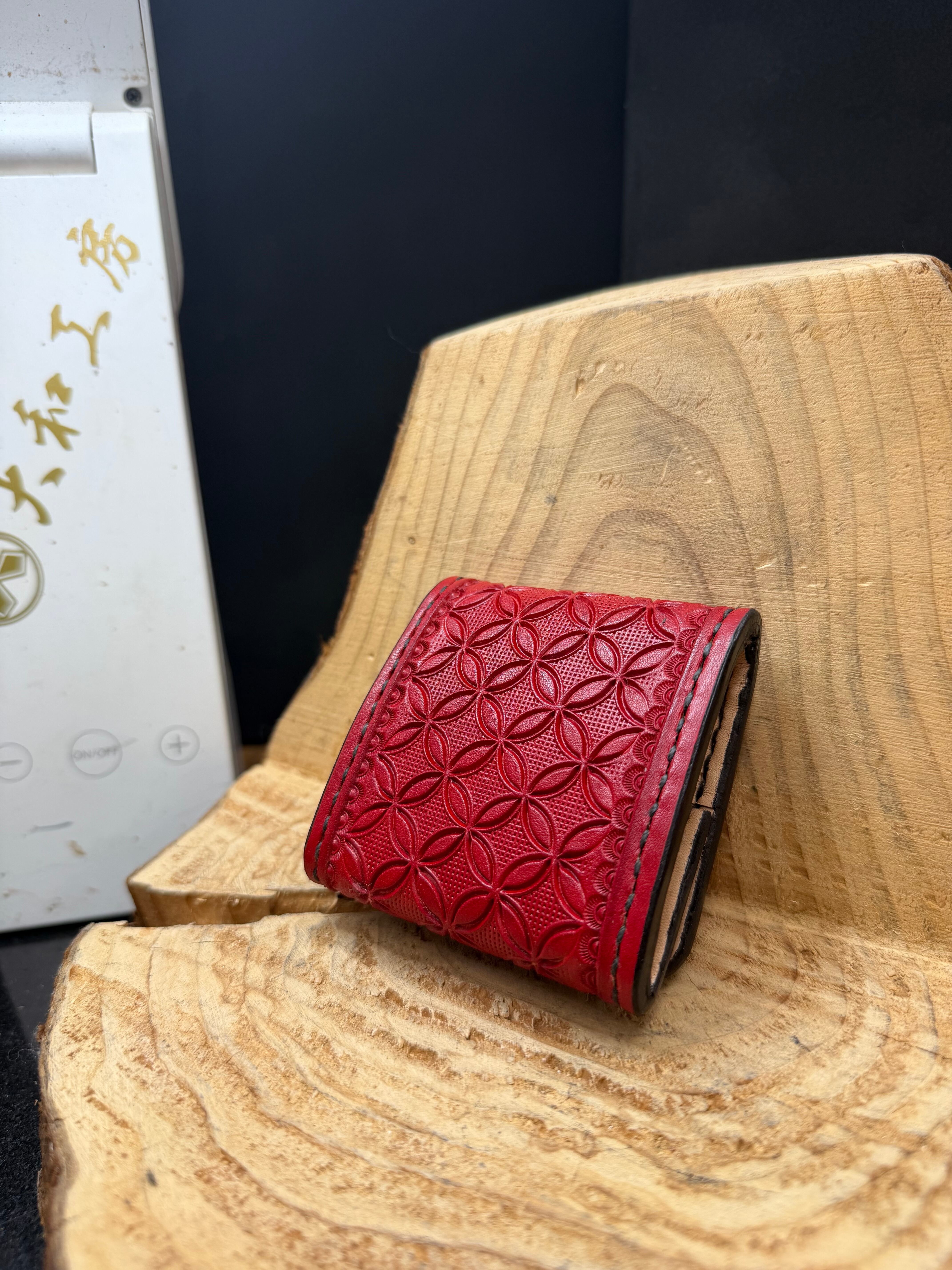 彫り込んだ後にレッドで手染めした個性光る作品です。