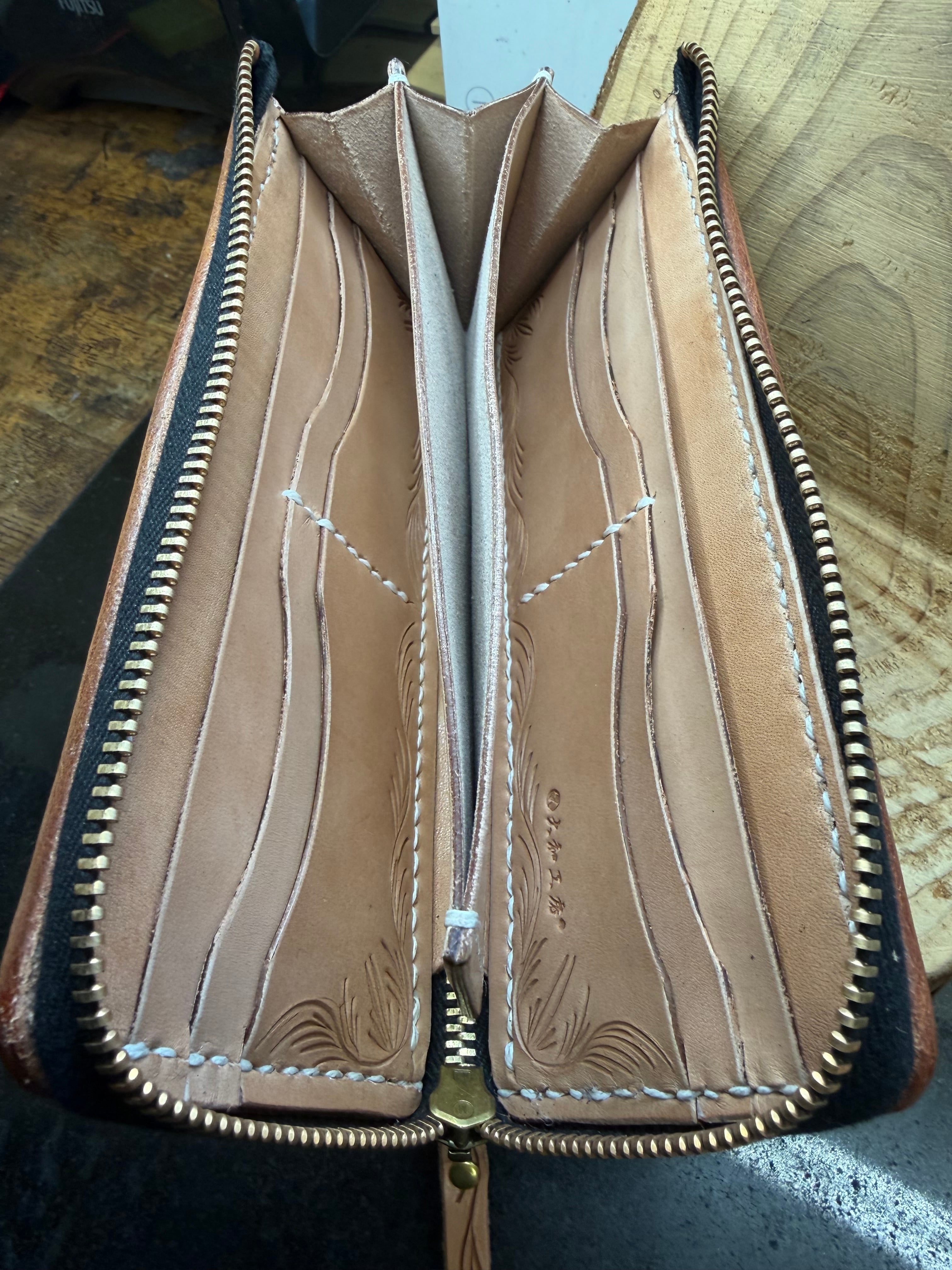 L字ファスナーウォレット(シェリダンスタイルカービング×アンダーカットバスケット)の王道のスタイルです。