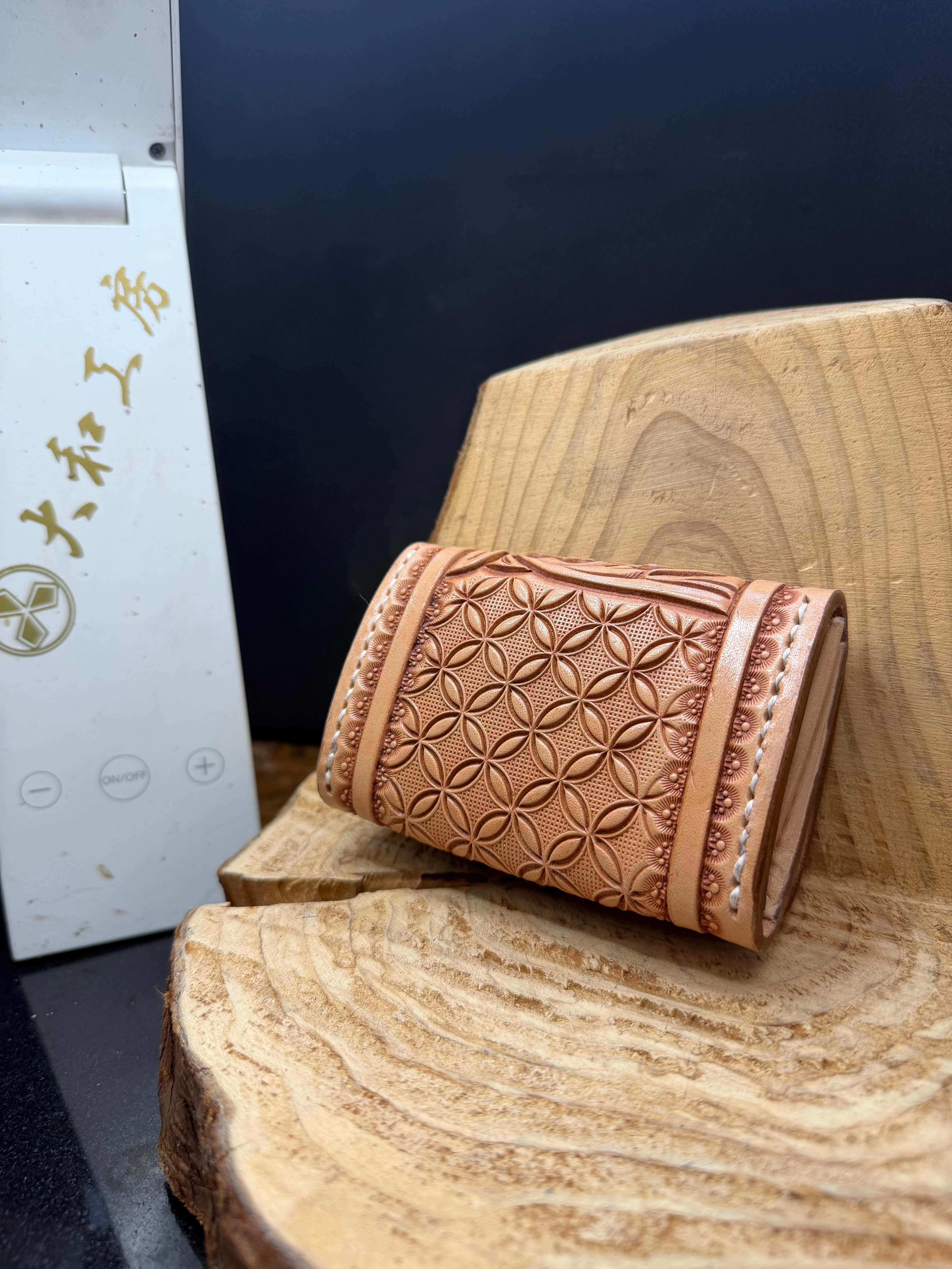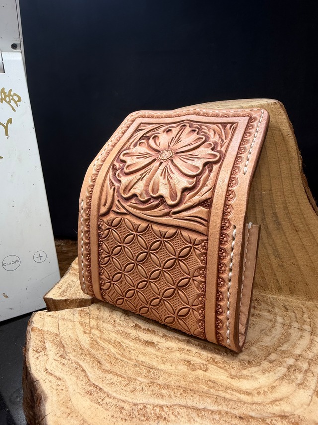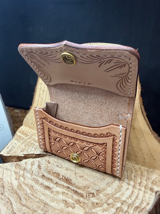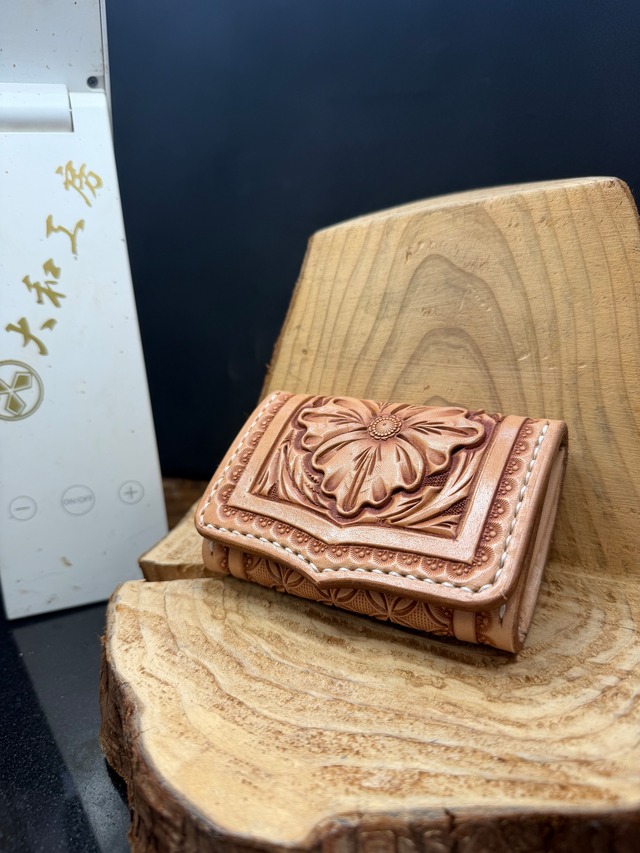 シェリダンスタイルカービングとワッフルバスケットのコンビネーションの名刺or小銭入れ