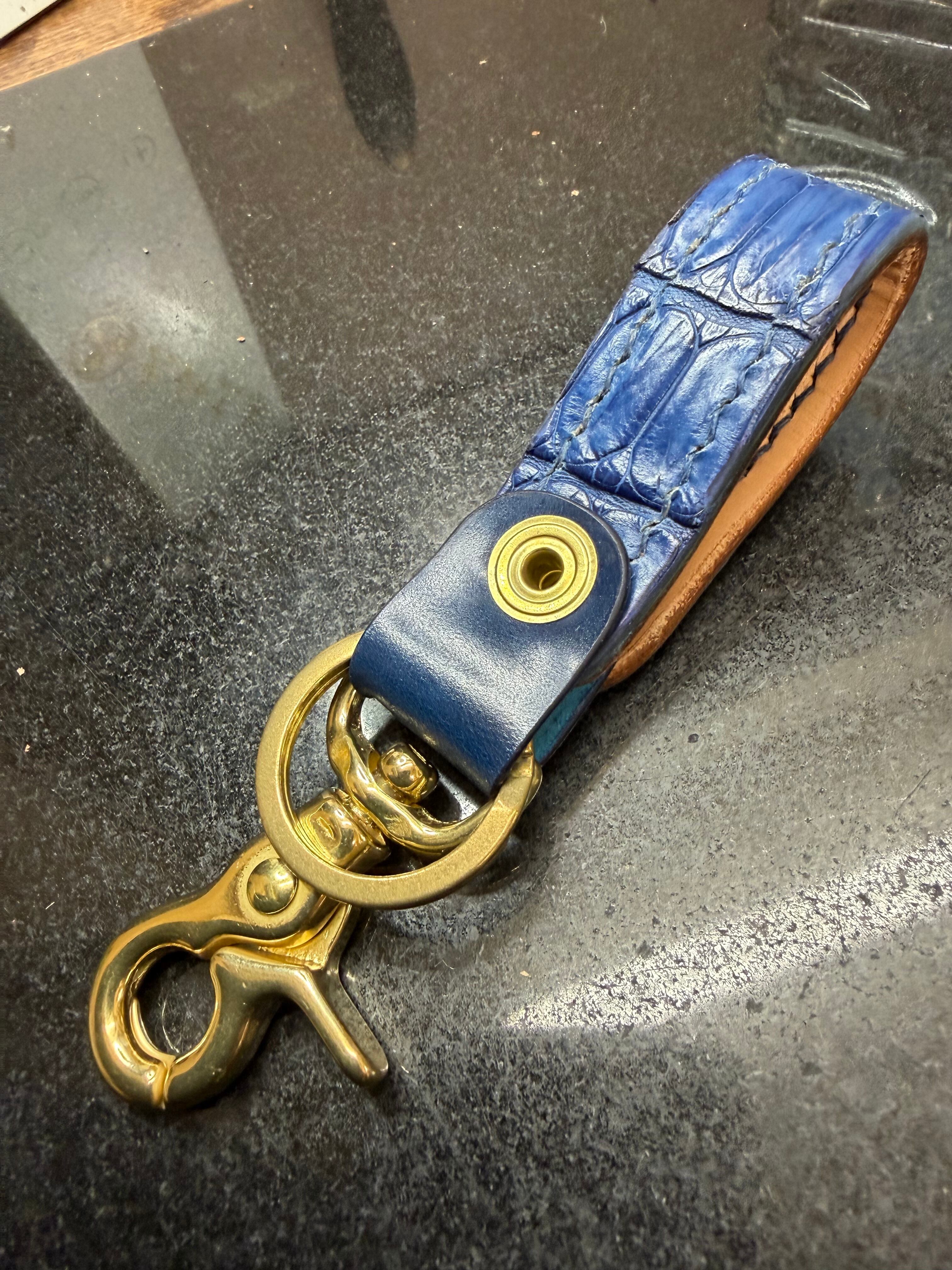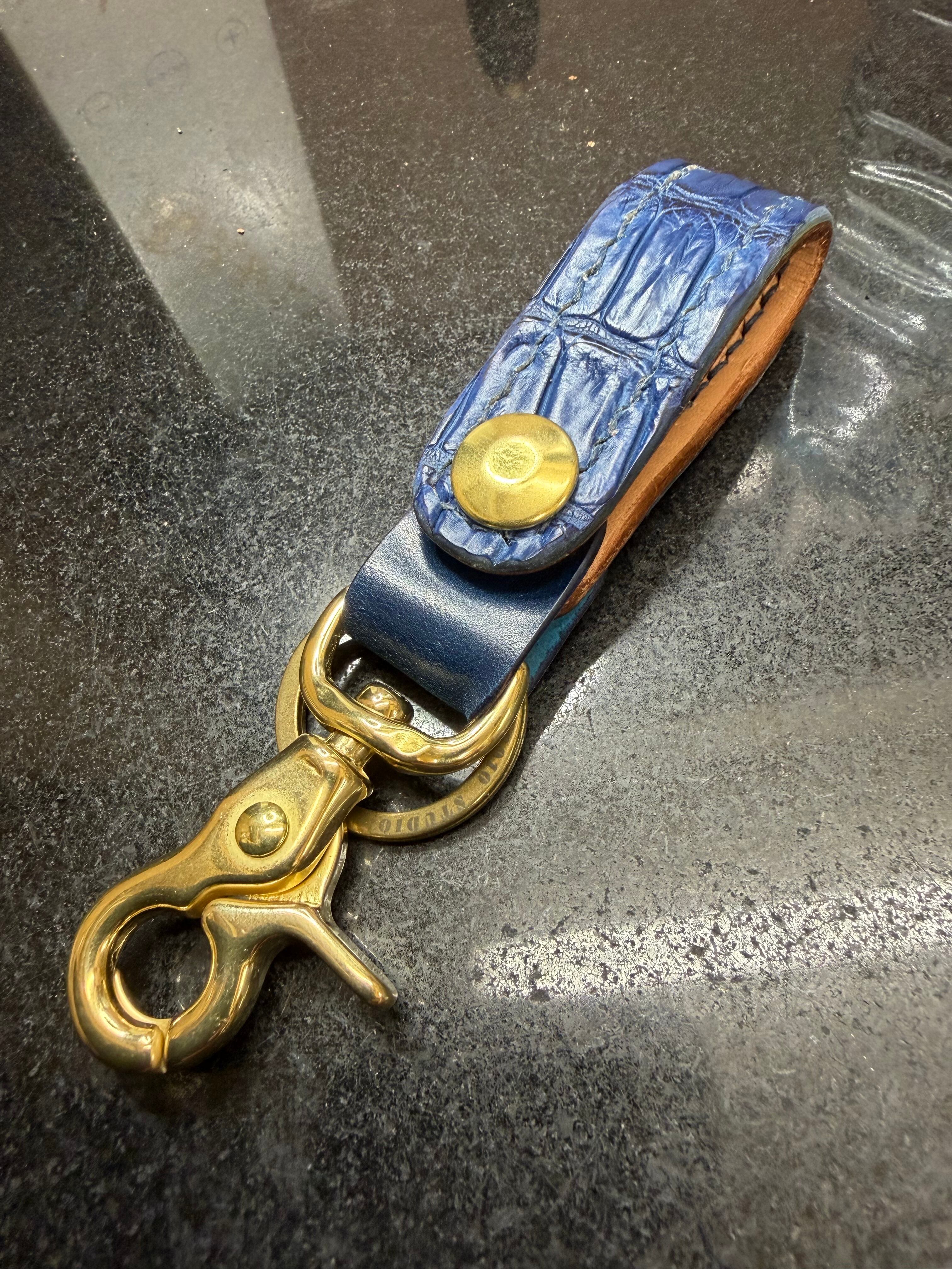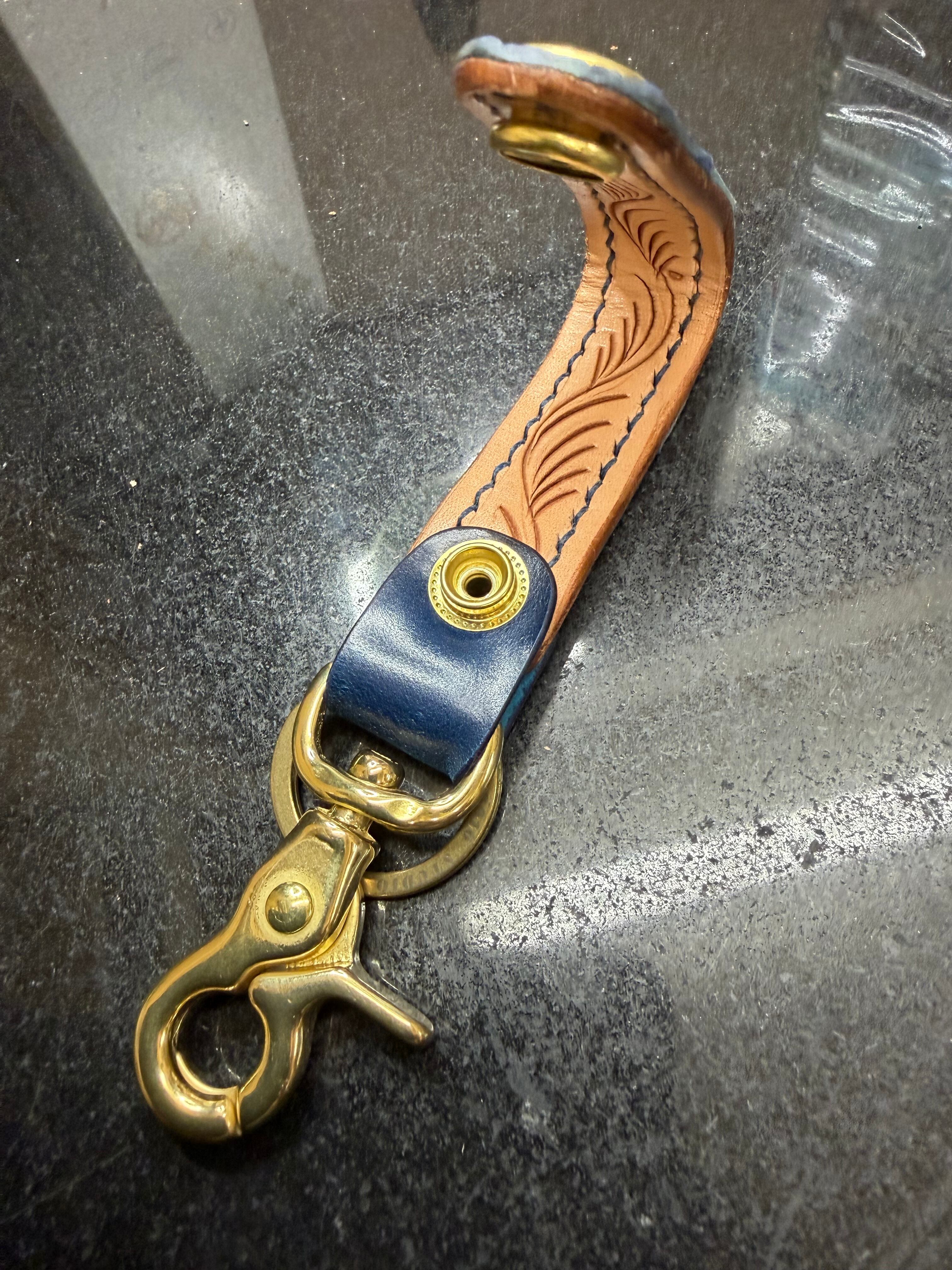 藍染ポロサスとブルーオイルコードバンを使用しピンスト唐草を彫り込んだロープトップミニとなります。