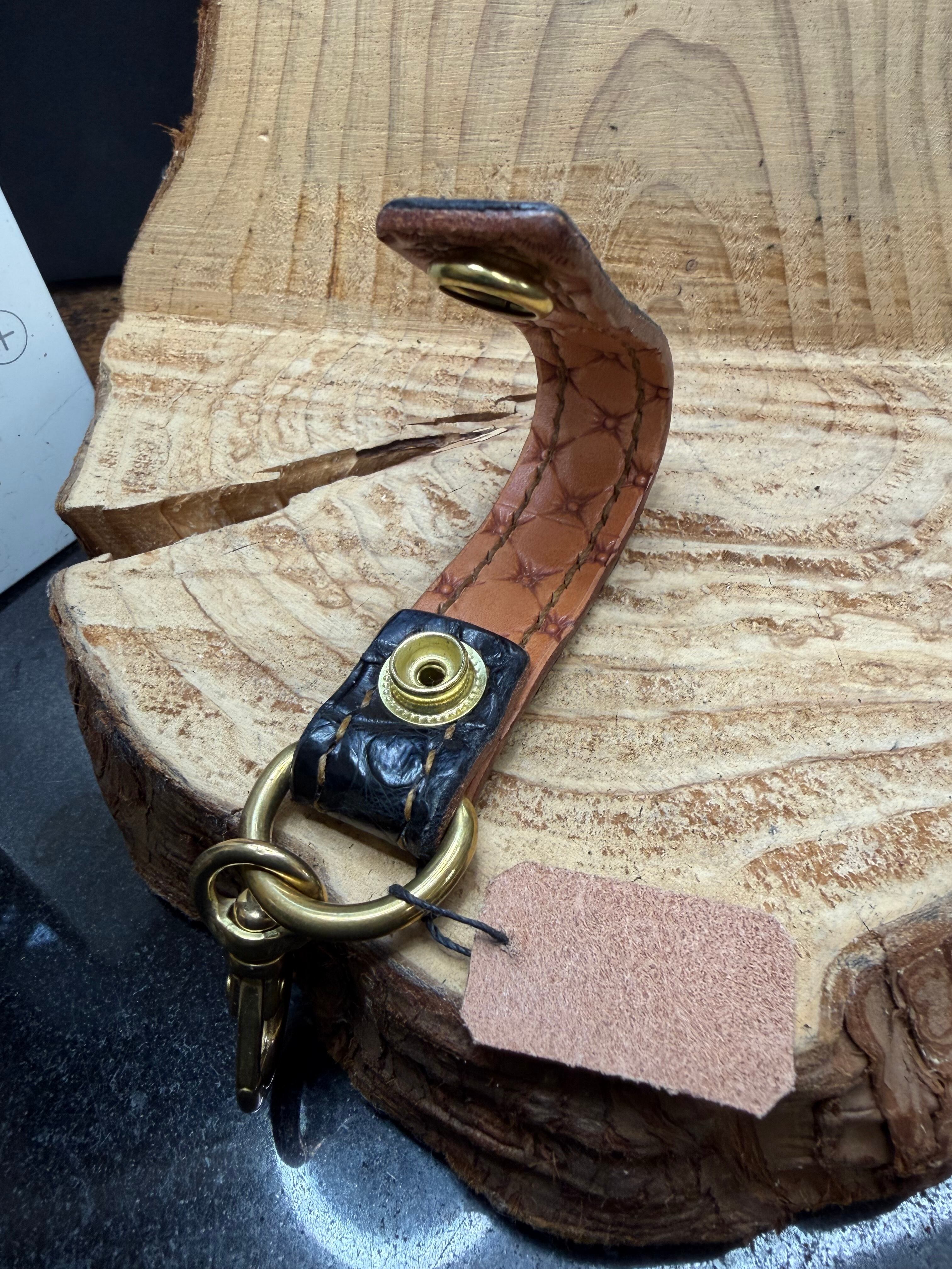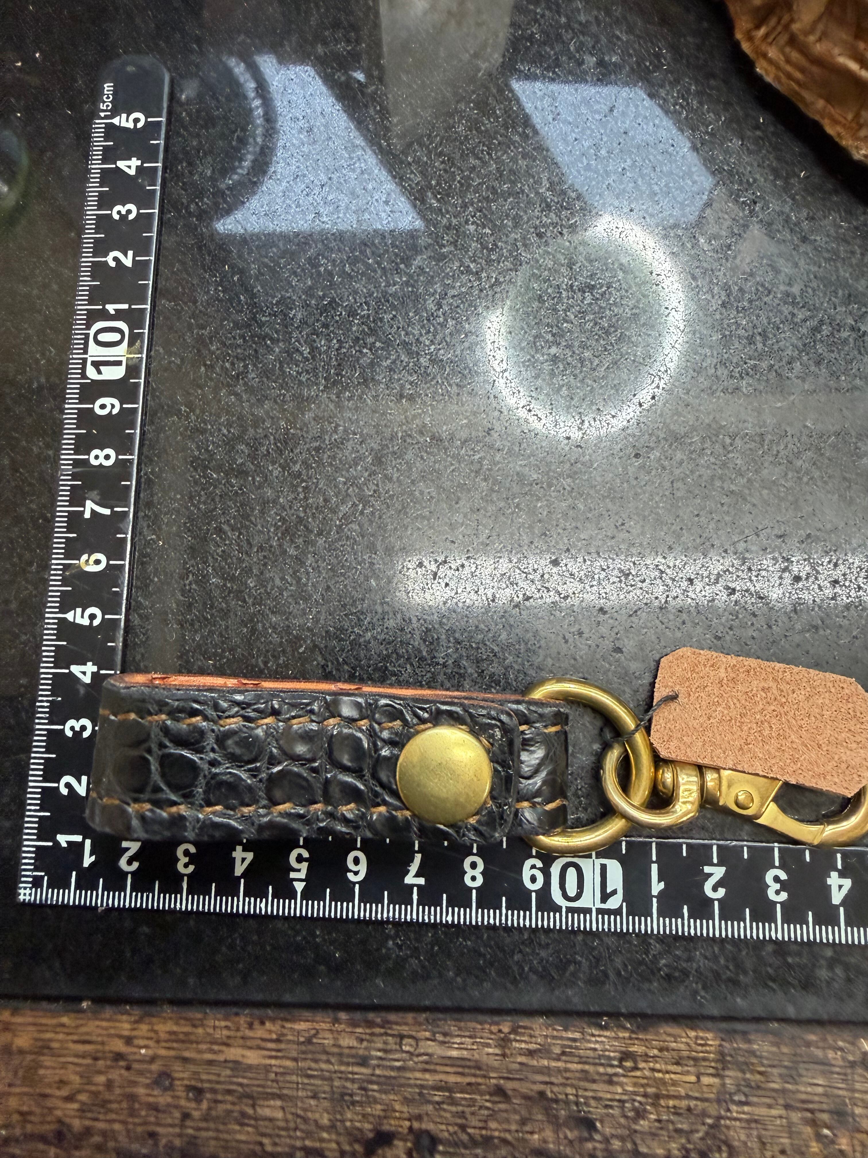 マットブラックのスモールクロコダイルに裏面ピンスト唐草を彫りこみした極上作品となります。
