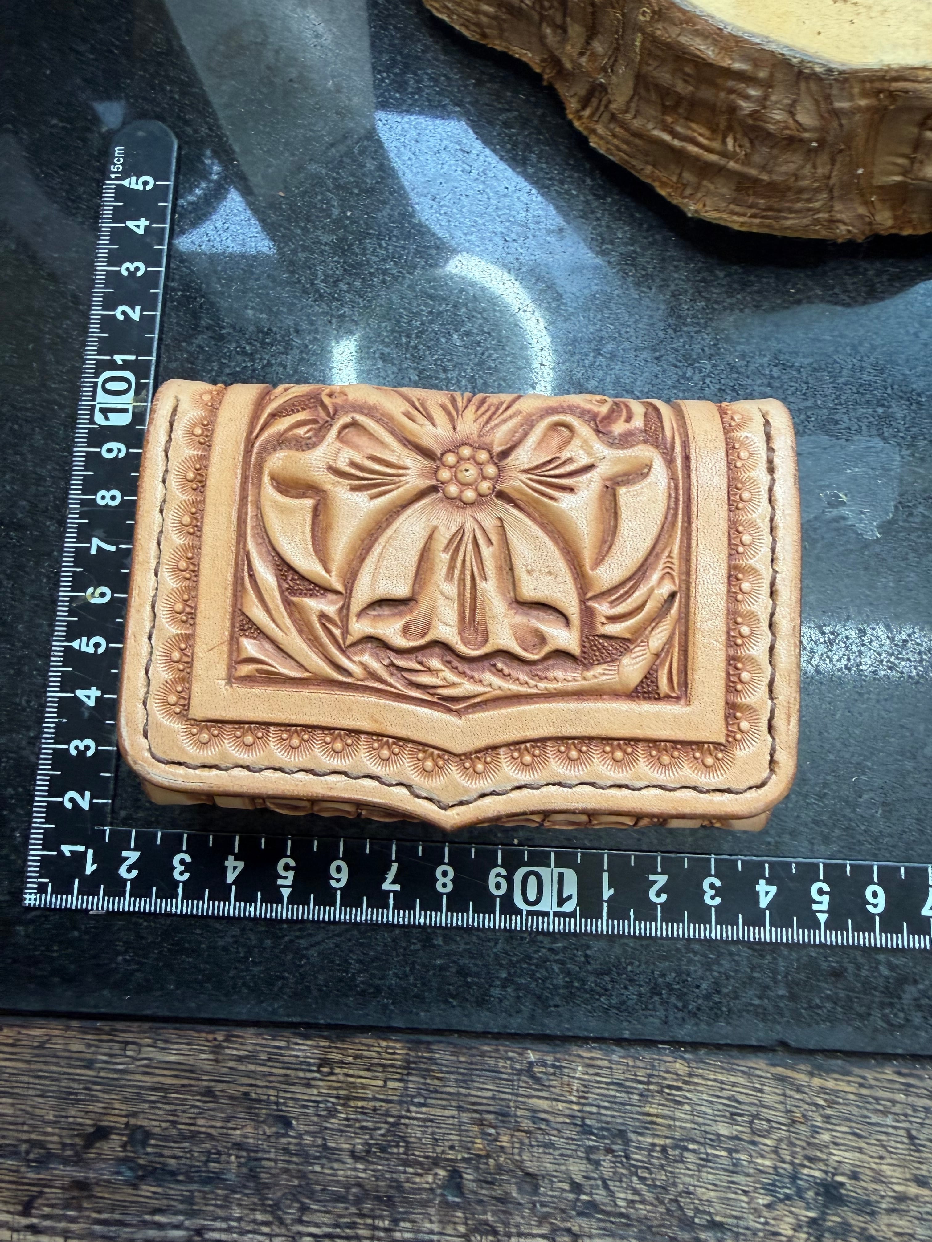 名刺カード入れor小銭入れ(桜カービング×アンダーカットバスケット)