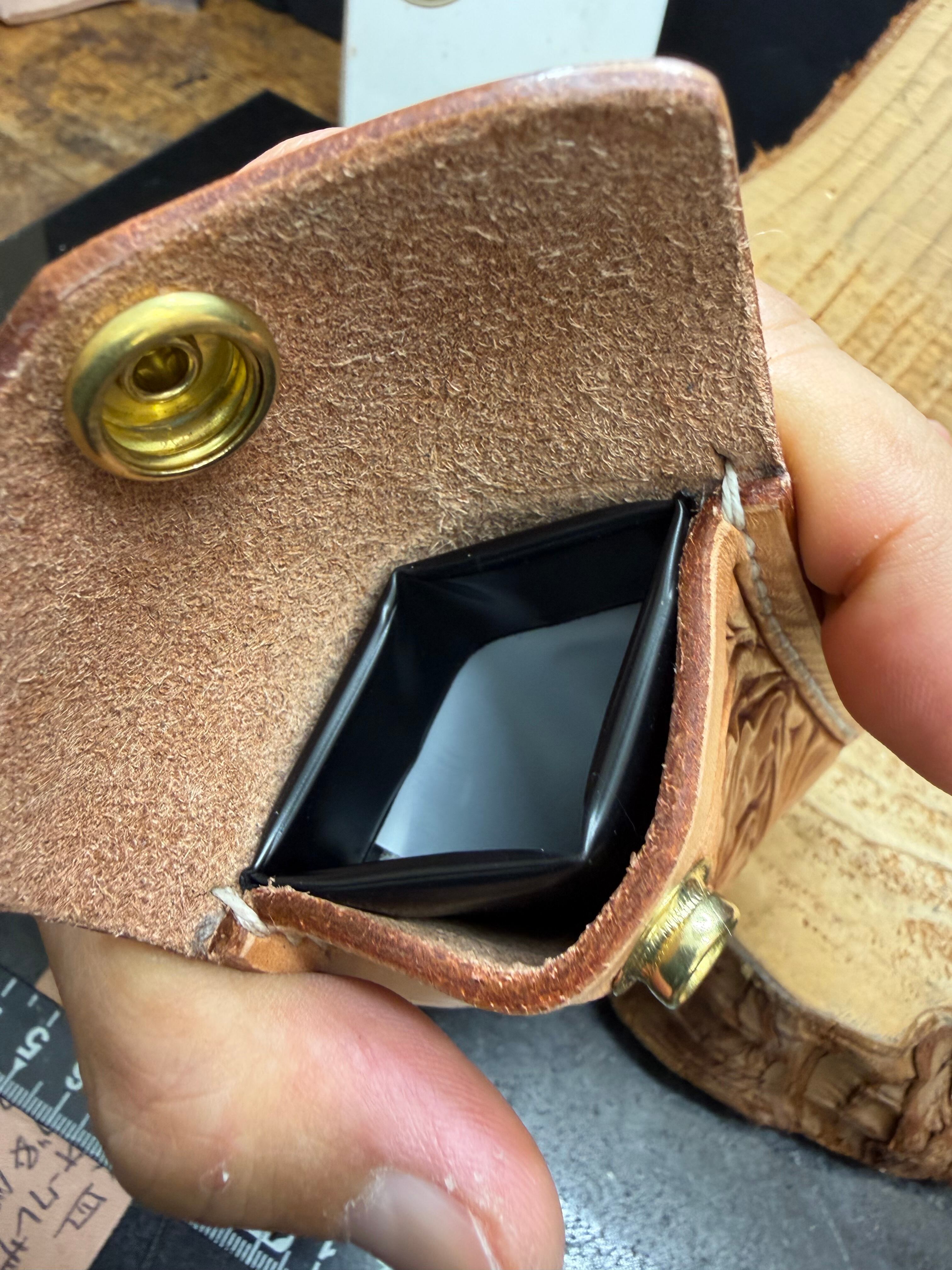 携帯灰皿としても、小銭入れとしても使える作品です。