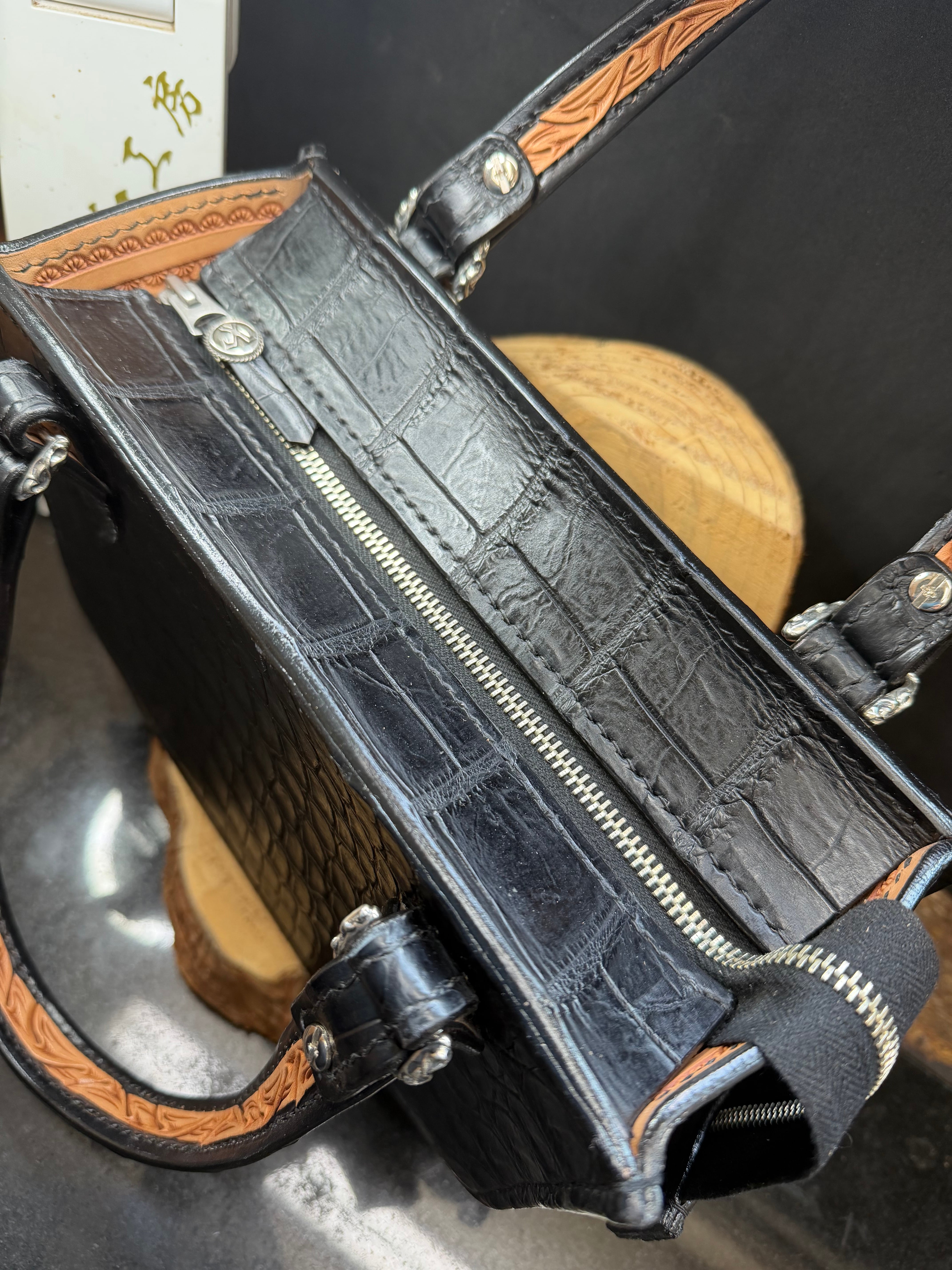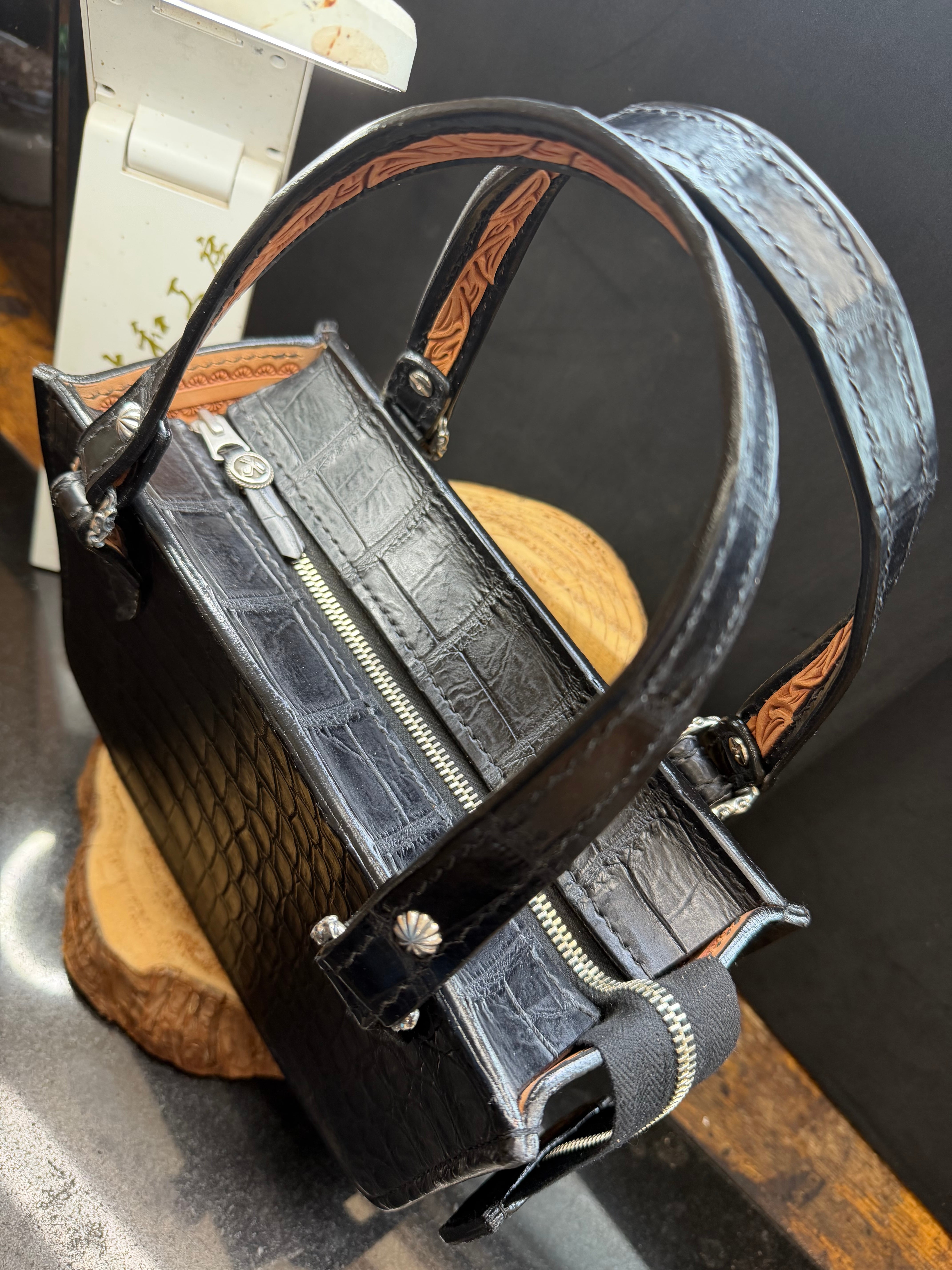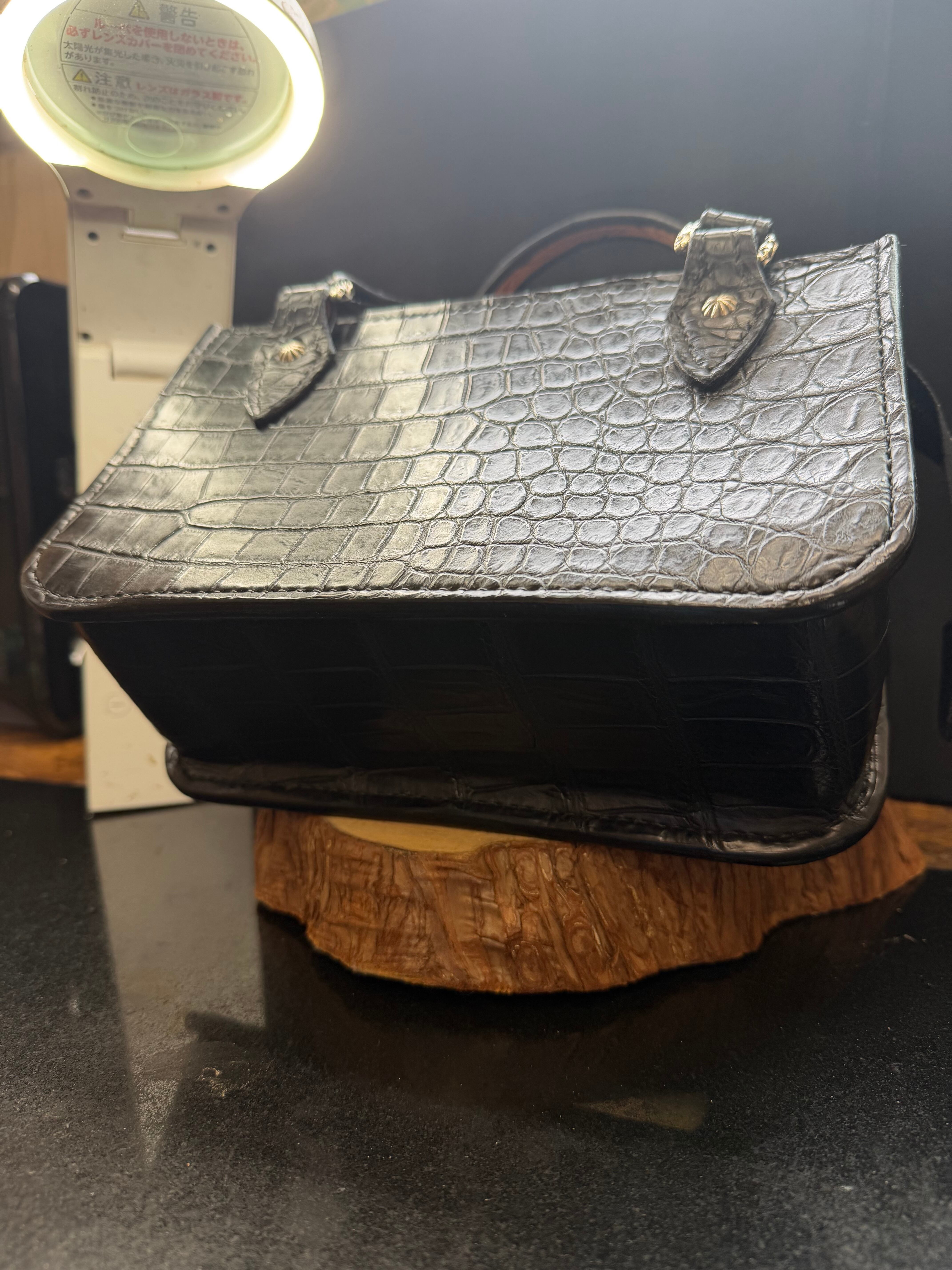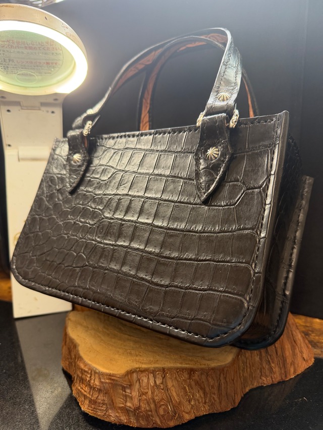至極マットブラックポロサス(スモールクロコダイル)・ハンドバッグ