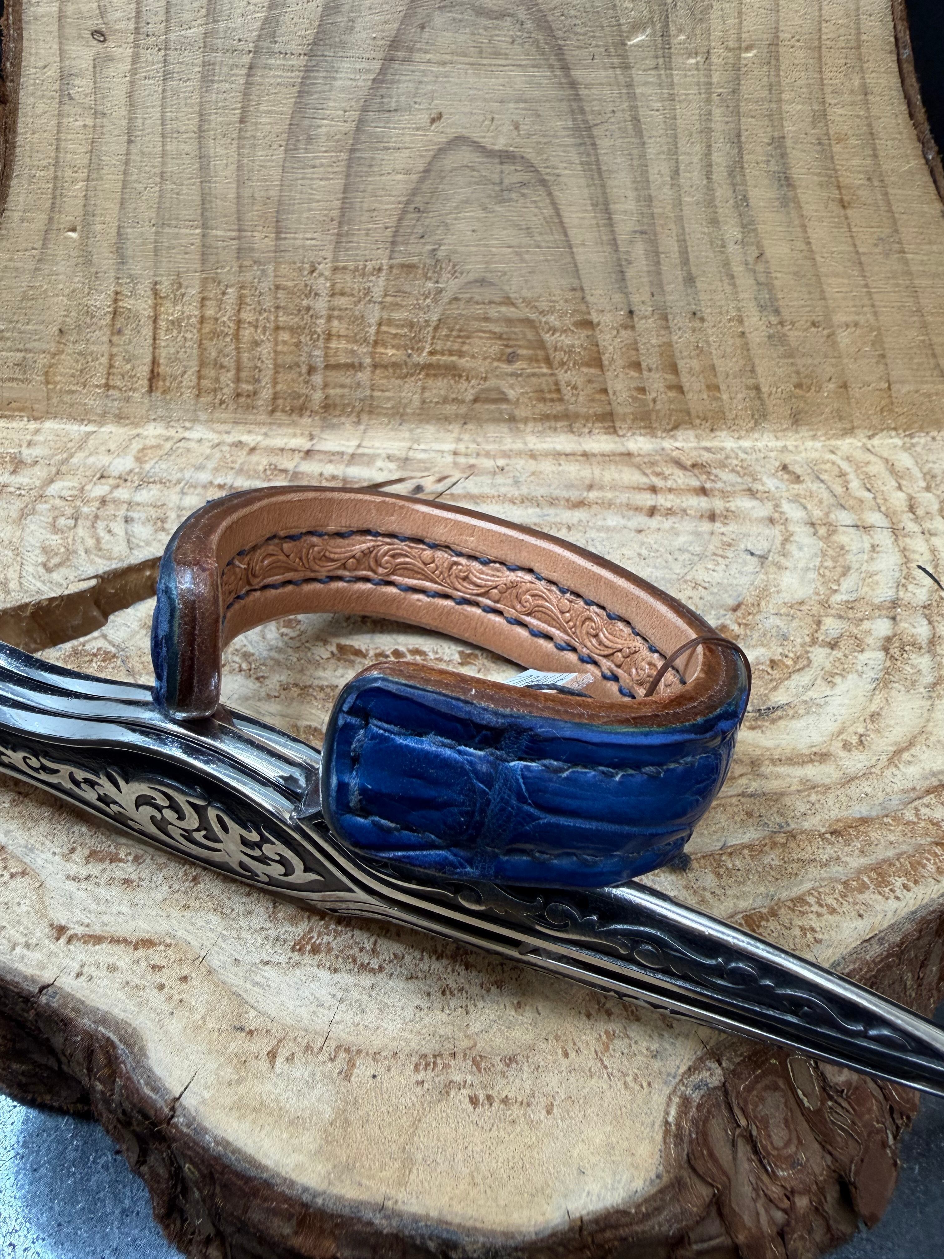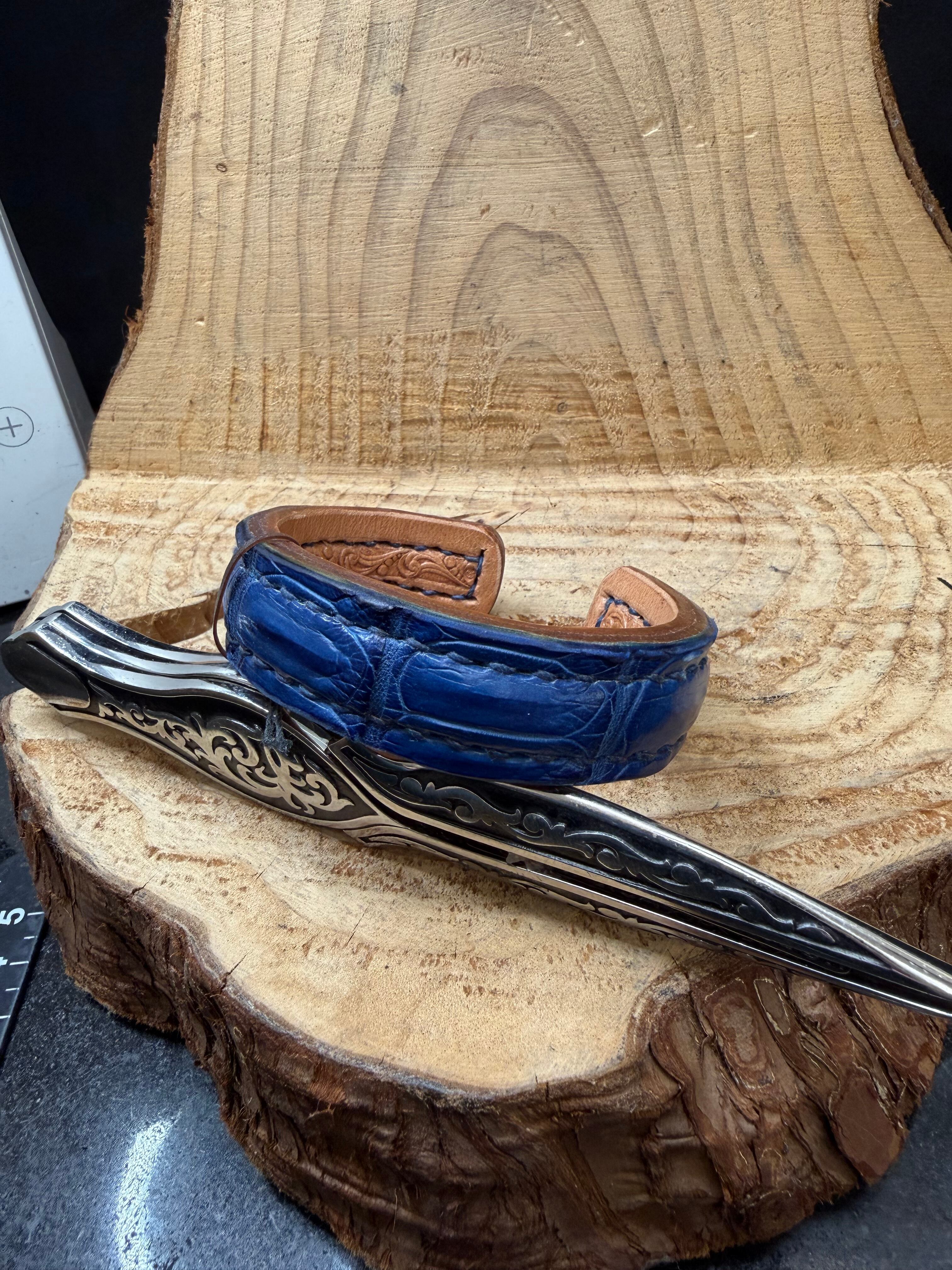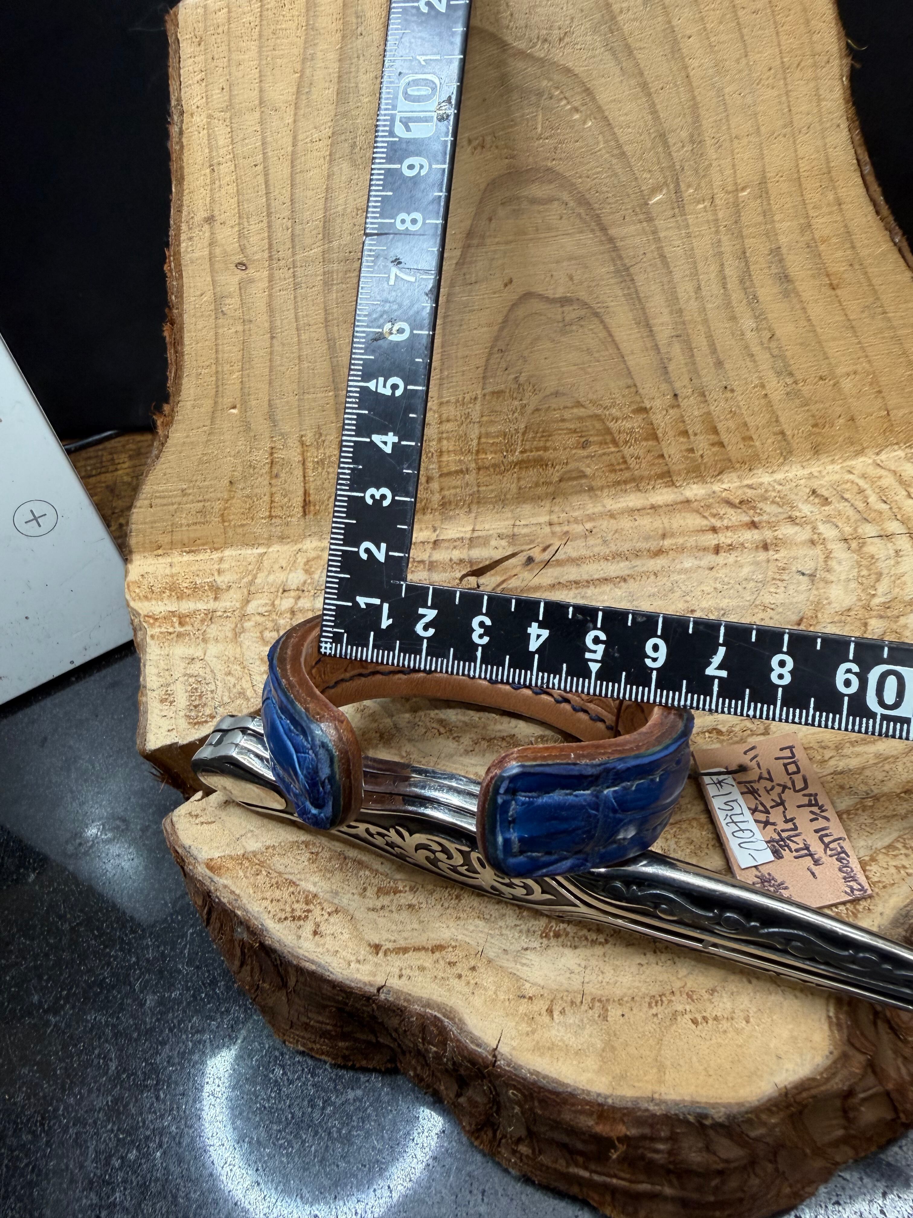 藍染スモールクロコダイルのシャープバングル(内側にリーフバスケット)