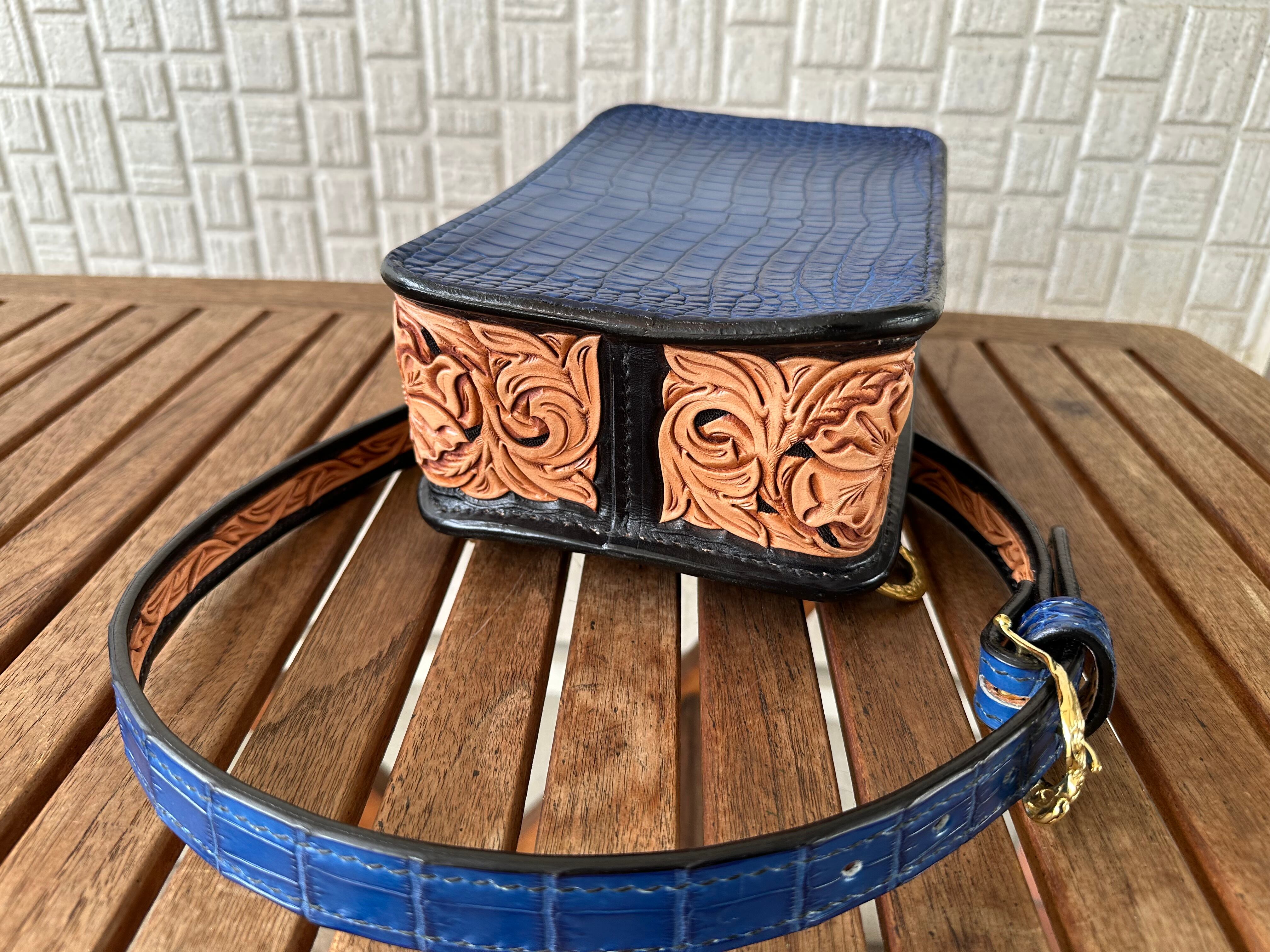 ショルダー紐にもリーフカービングを彫り込んでおります。