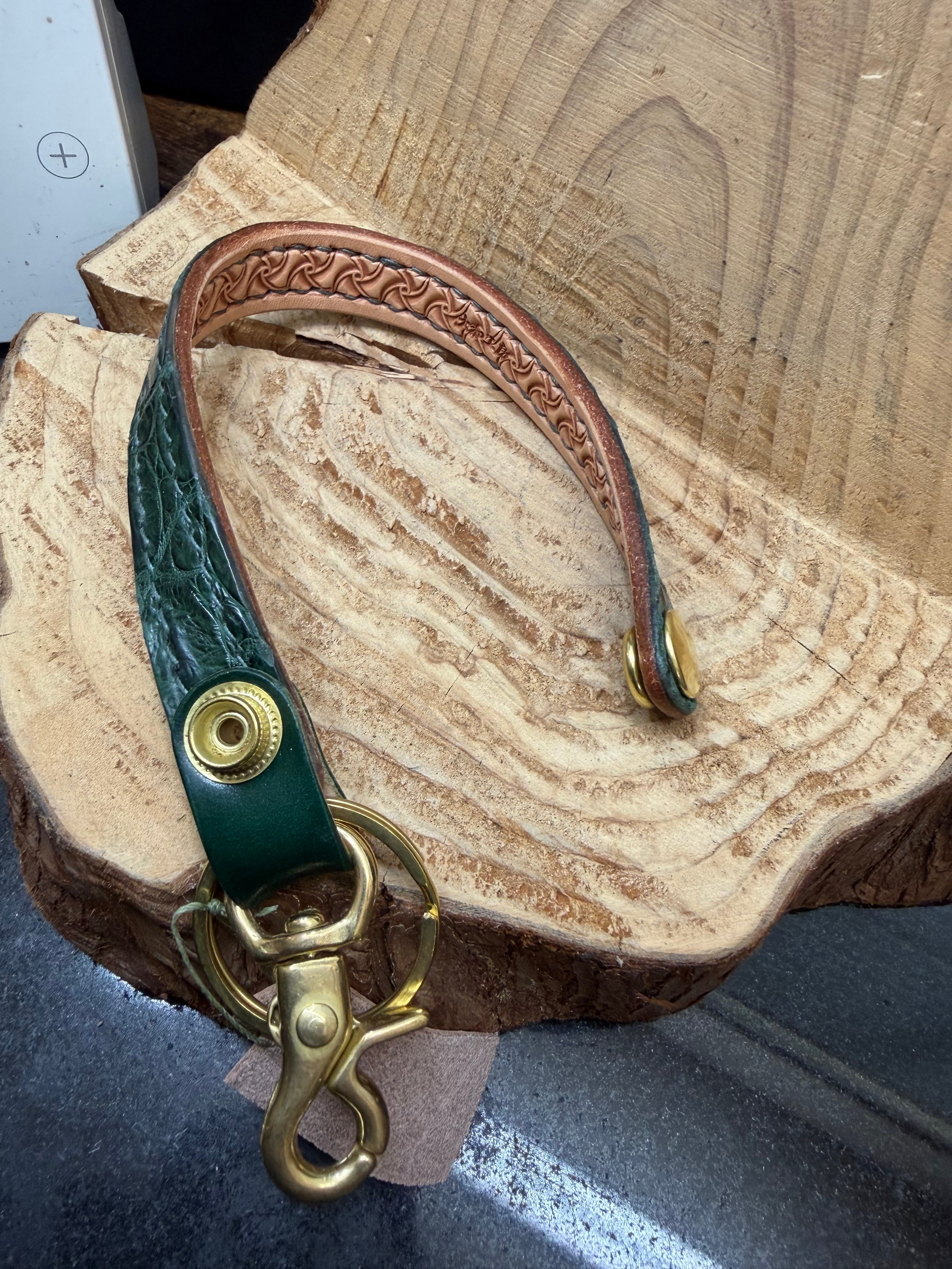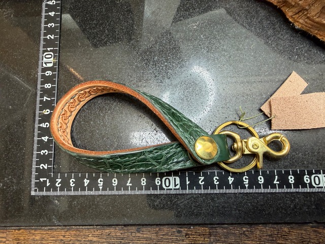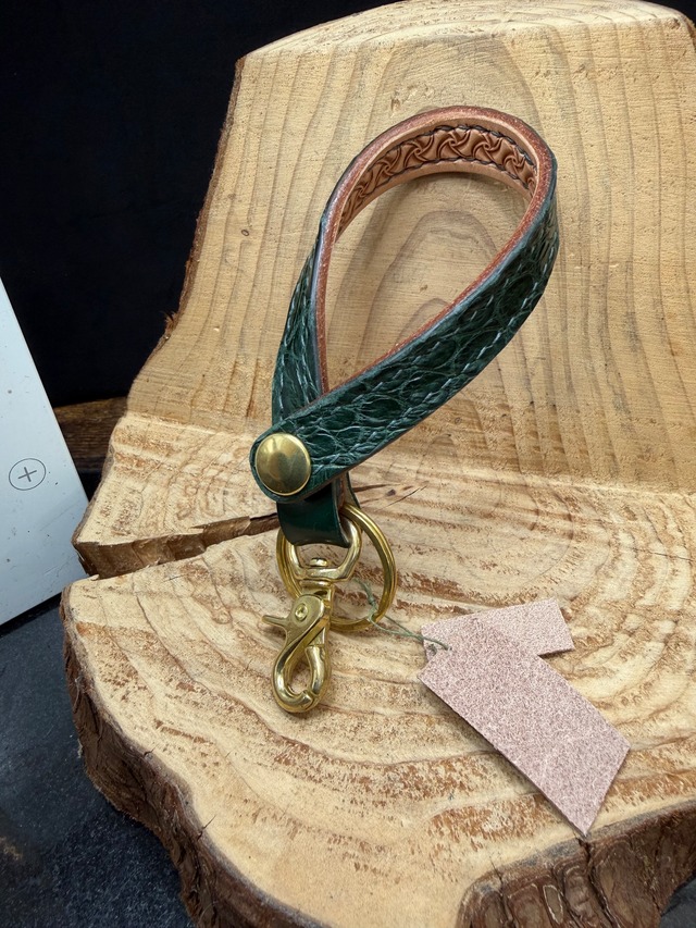 贅沢にマットグリーンポロサス(スモールクロコダイル)を使用した作品です。