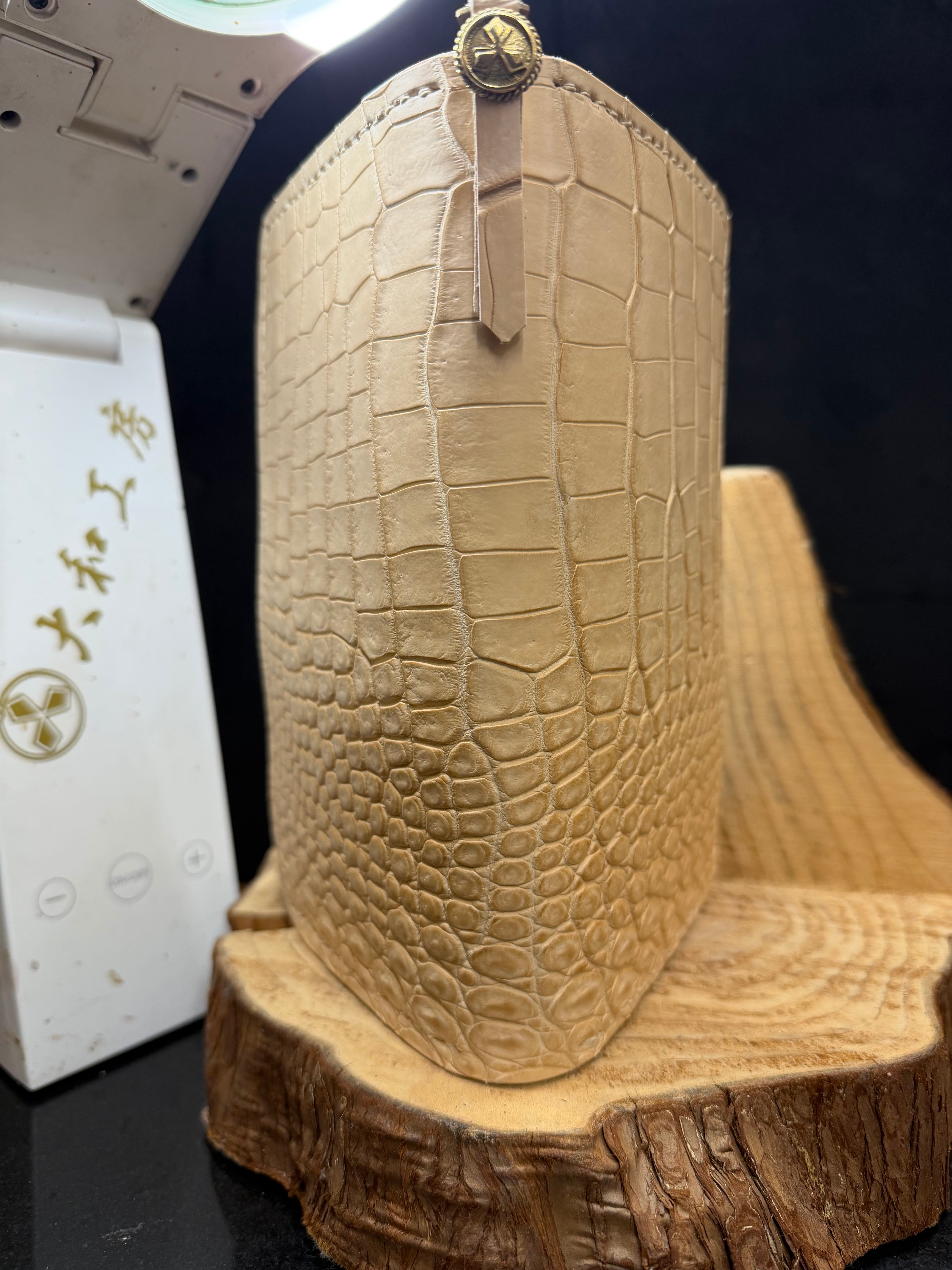 ヌメ革ポロサスのメインとなる腹部位を贅沢にも半分取りし使用したこれ以上無しの自然の美しさから生み出された作品です。(お腹な真ん中取りですと金額は7万近く上がります)