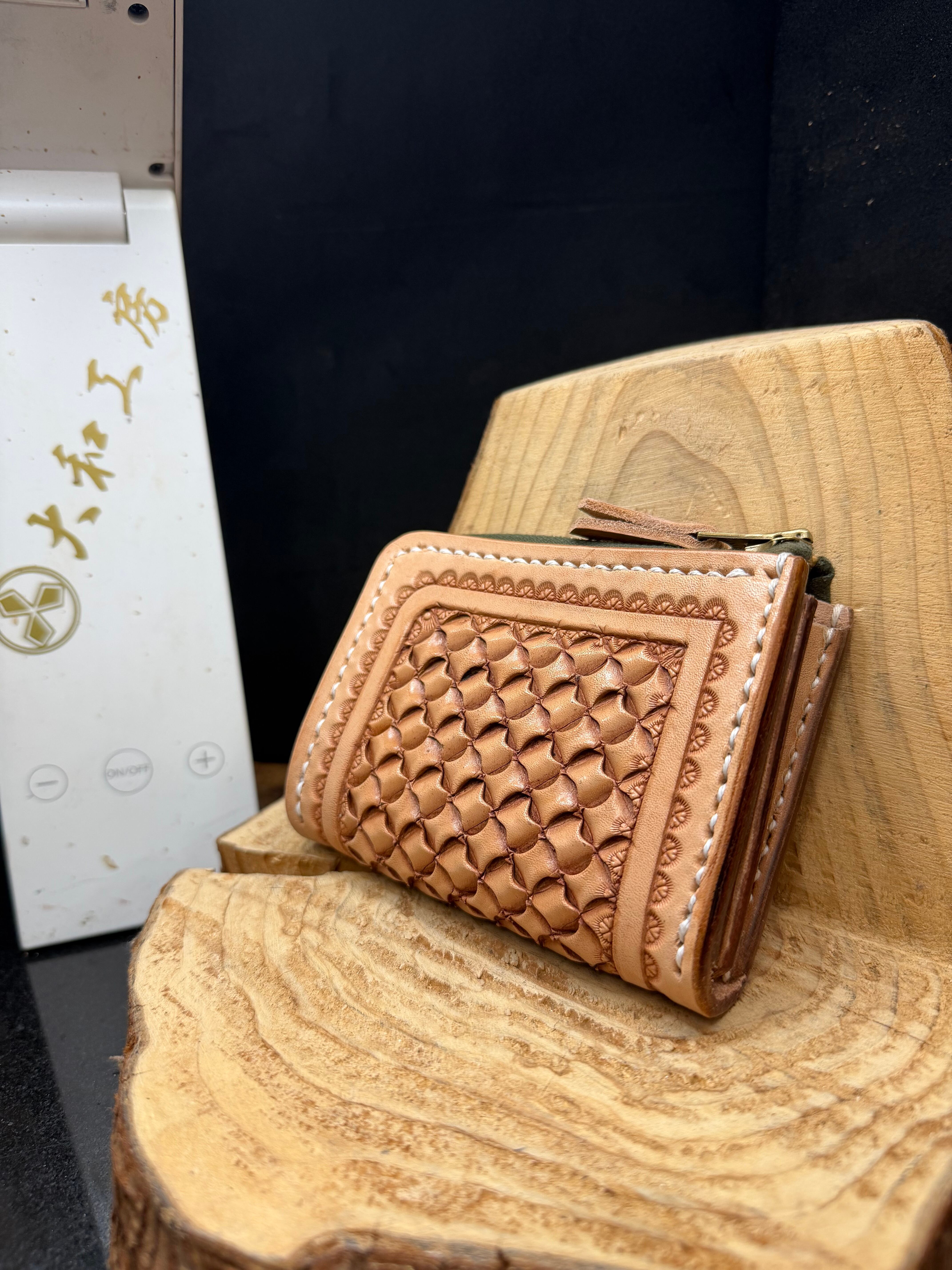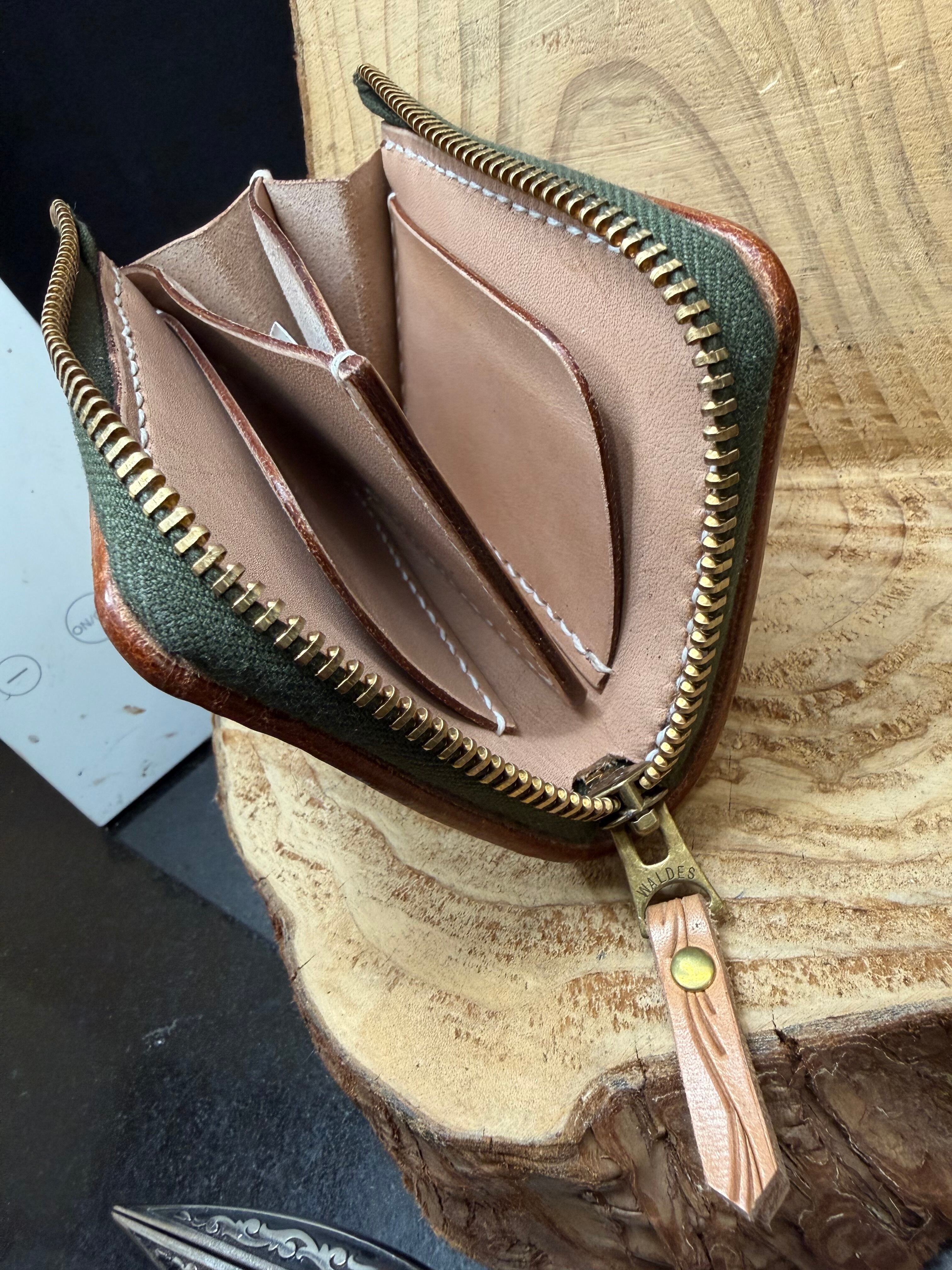 小さいながらも、カード収納小銭入れ、札もしっかりと収まる作品です。