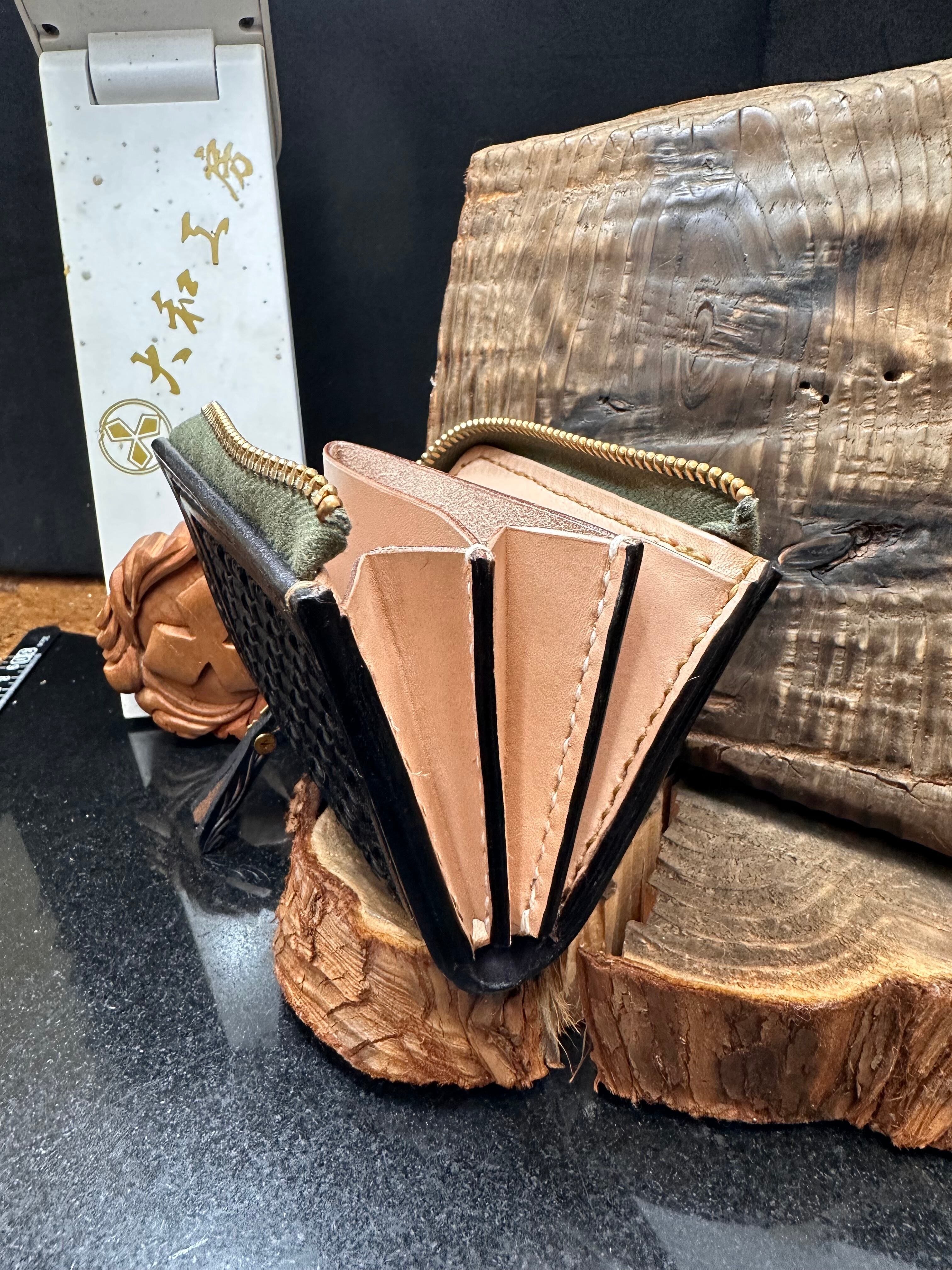 小さいながらも、カード収納小銭入れ、札もしっかりと収まる作品です。
