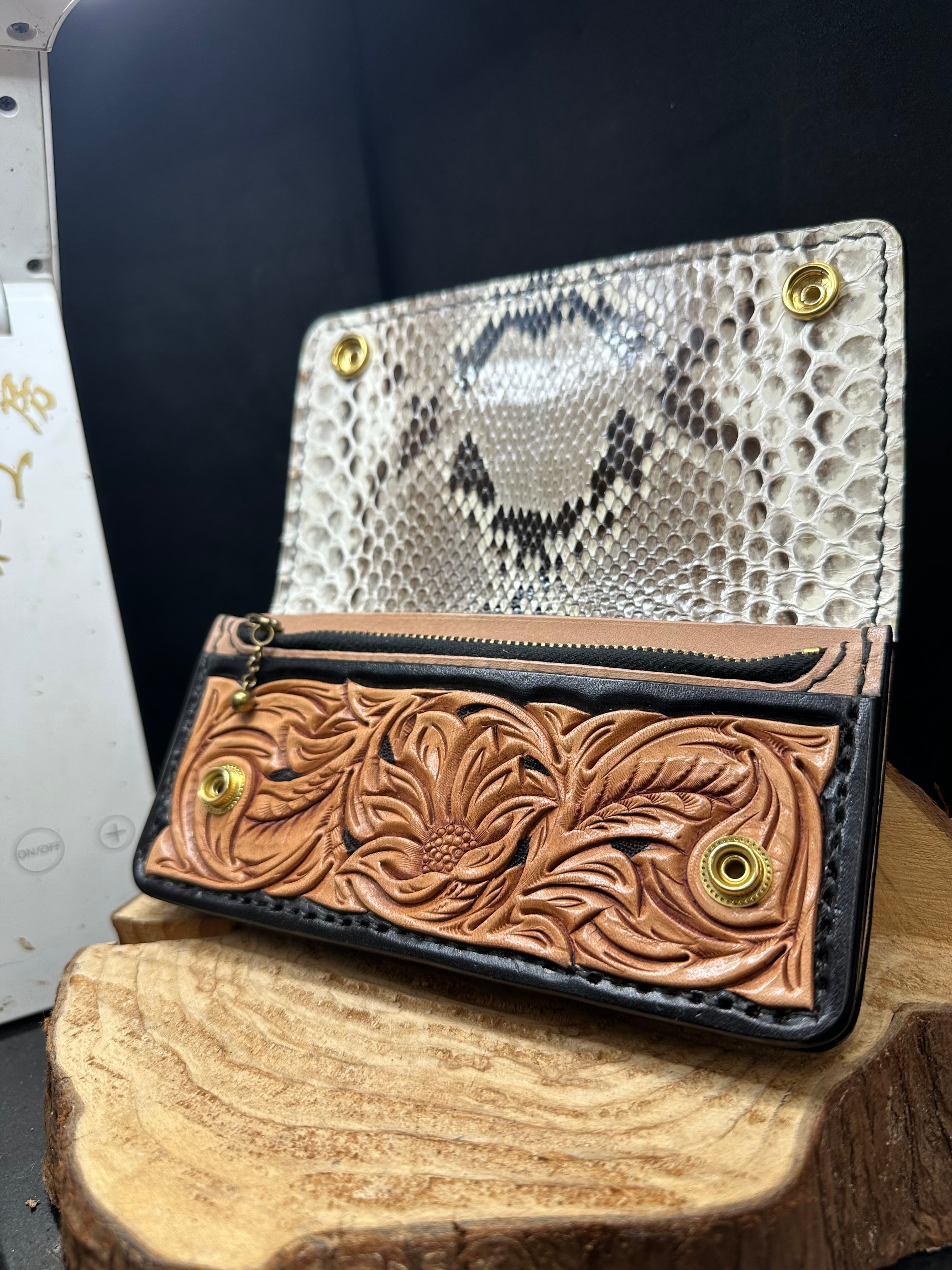 和柄の蓮にもにも見えるアメリカンレザーカービングの拘りの彫りこみ
