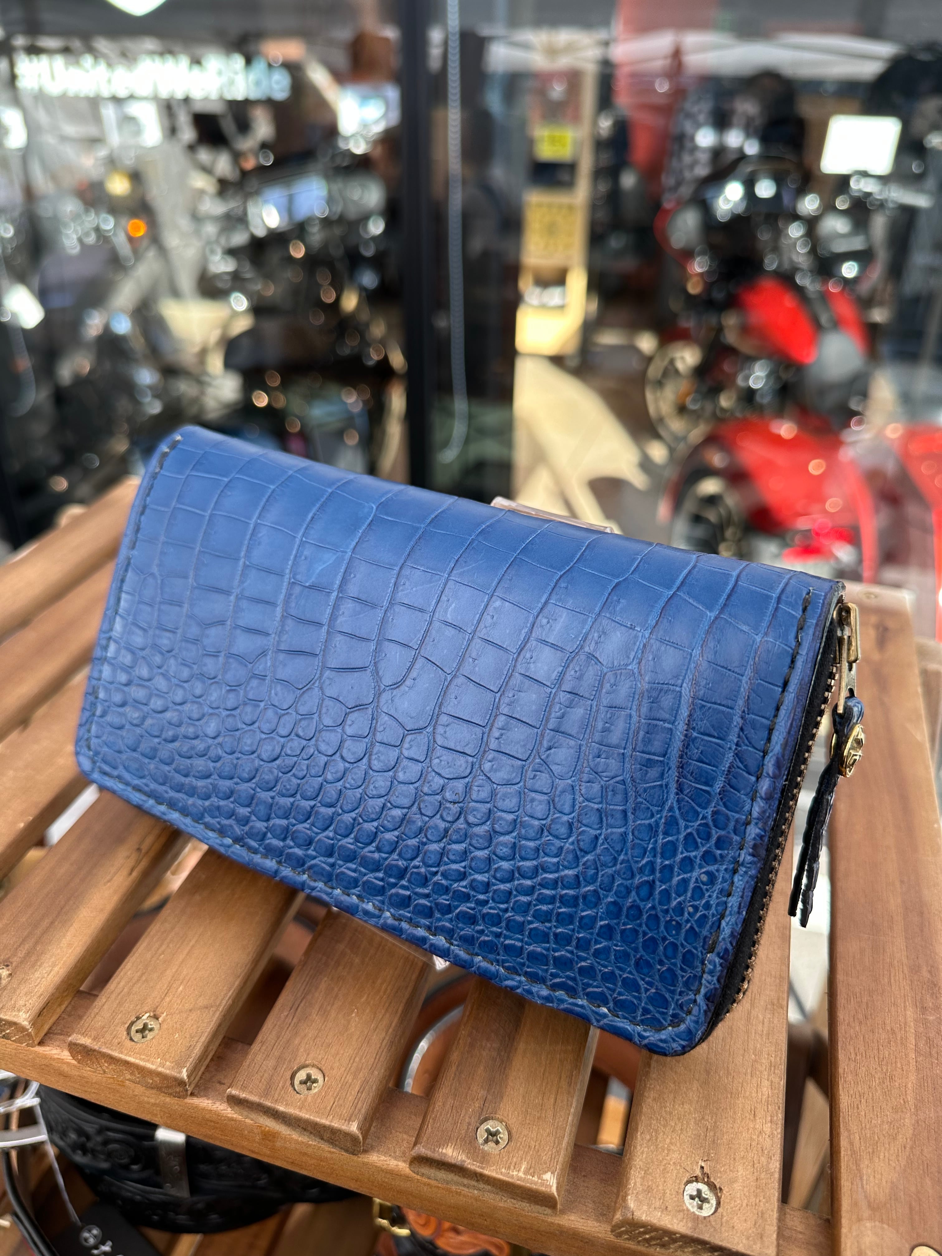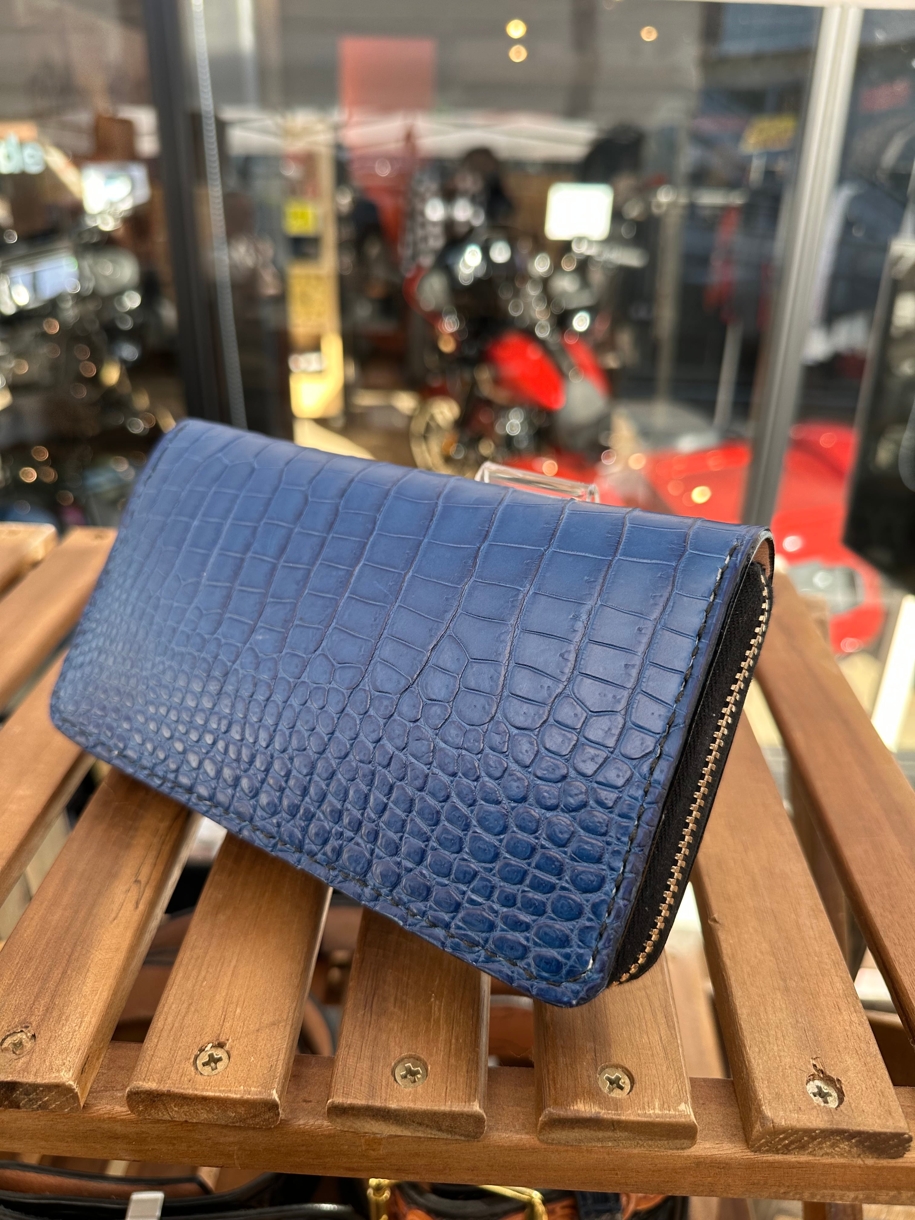 藍染スモールクロコダイル・ラウンドジッパーウォレット