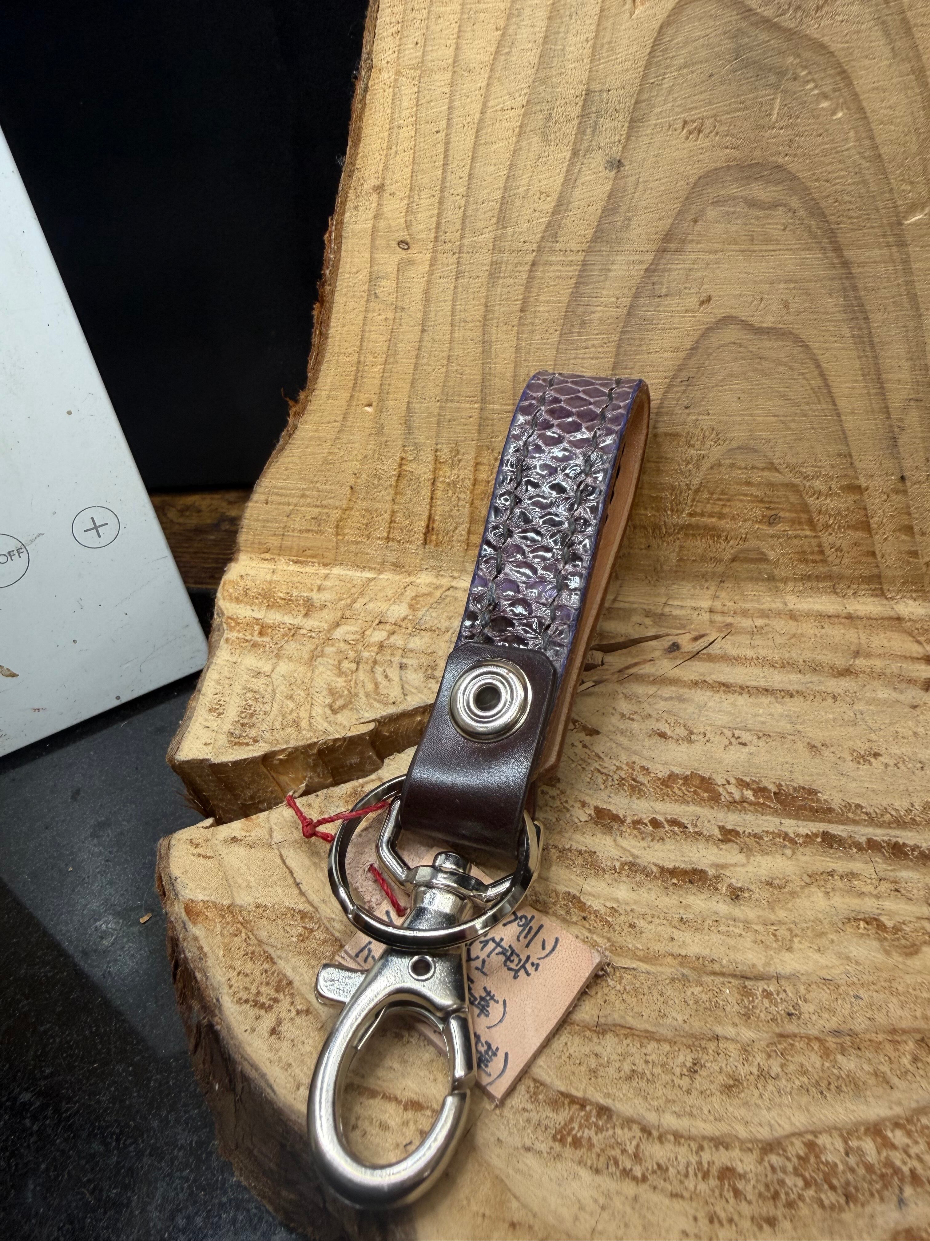 大変珍しいパープルカラーのダイヤモンドパイソンを使用し中には極小の手彫りピンスト唐草を彫りこんだロープトップとなります。