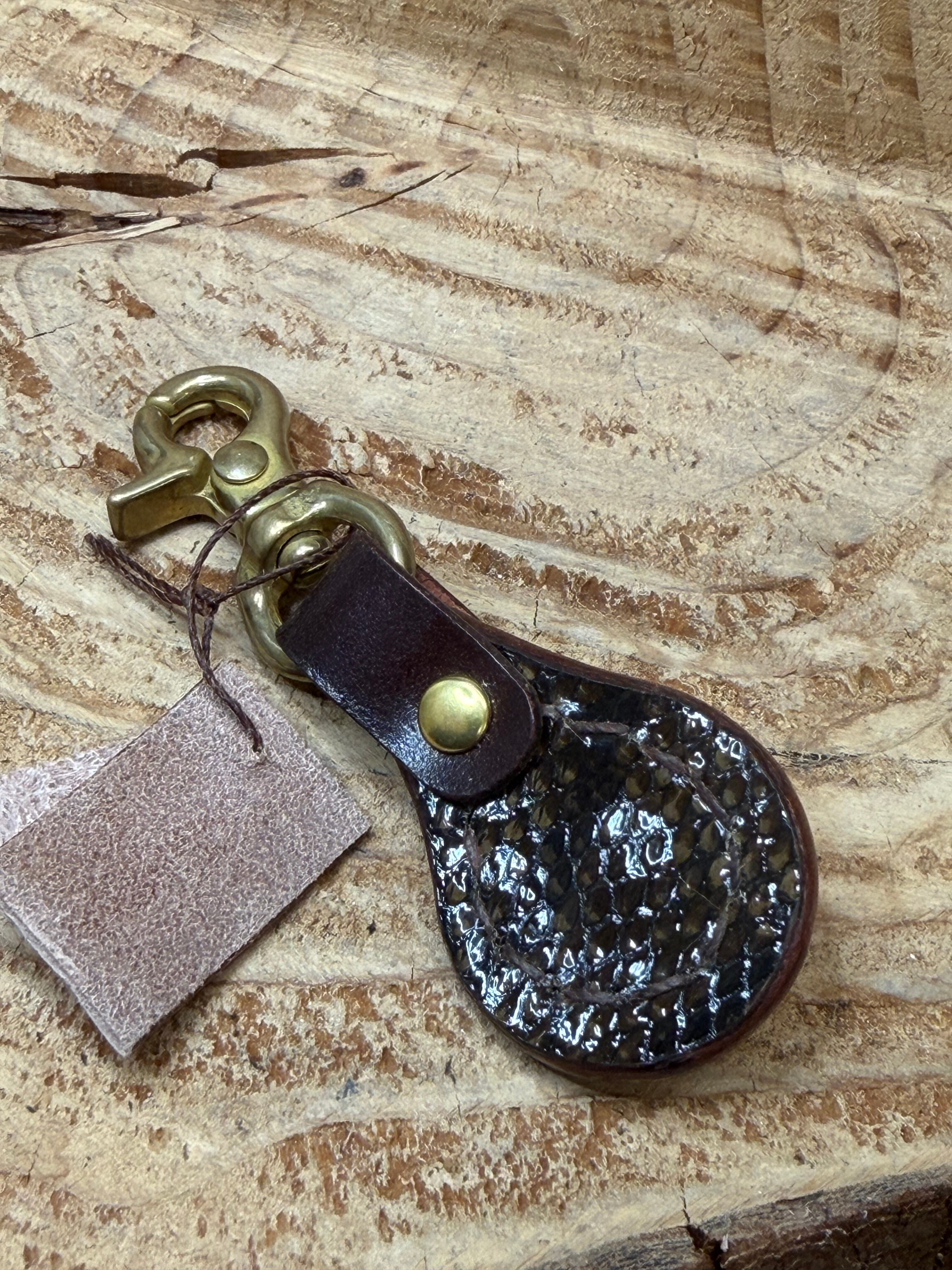 ダイヤモンドパイソンとバスケットの彫り込みをされたキータグです。